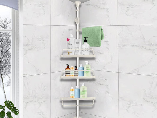 Vannas istabas stūra plaukts vannas dušai, teleskopisks, balts plaukts, 4 līmeņi