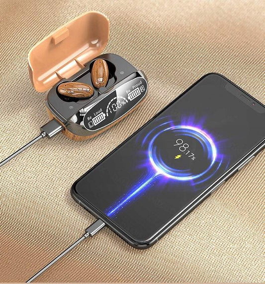 Bezvadu austiņas Bluetooth koka dizaina korpusā