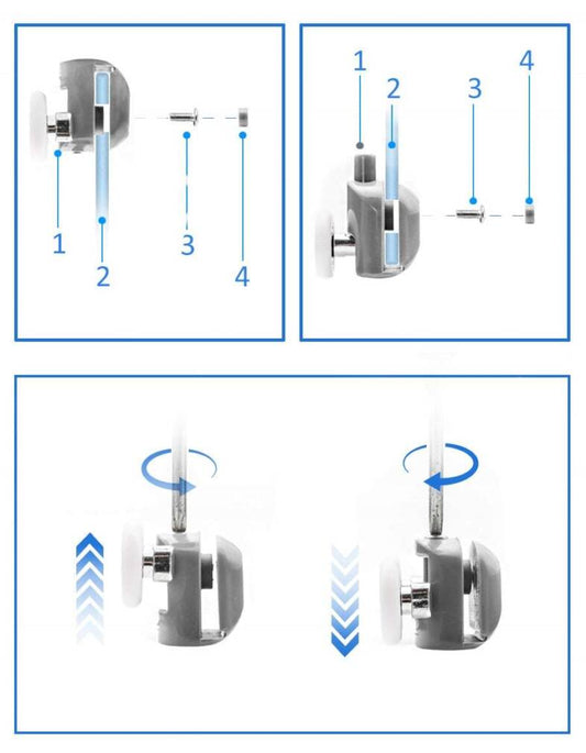 Riteņi rullīši dušas durvīm (4 augšējie riteņi + 4 apakšējie riteņi)