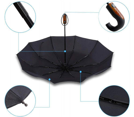 Reverss, automātisks lietussargs melnā krāsā