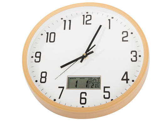 Sienas pulkstenis, liels, kluss, 30 cm, apaļš rādītājs, datums, temperatūra, koksParastā cena 27,09€Parastā cenaVienības cena par-
