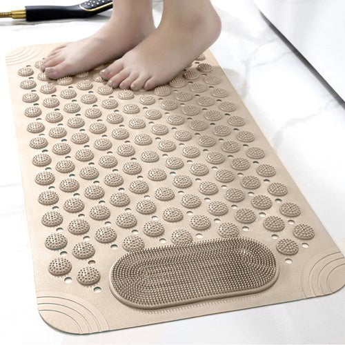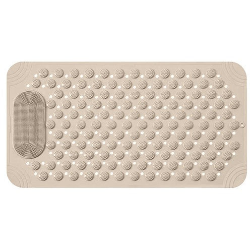 Drošība un relaksācija vienā! Lieliski piemērots vannai un dušai, masāžas paklājiņš ērtai vannošanai. Neslīdoša drošība - piesūcekņi paklājiņa apakšā efektīvi pasargā no slīdēšanas, nodrošinot stabilitāti un drošību, peldoties mitrā vidē. Relaksējoša pēdu un ķermeņa masāža - speciāli masāžas radzes nodrošina patīkamu pēdu masāžu, uzlabojot asinsriti un ieviešot relaksāciju ikdienas dušā. Ūdensizturīgs un ātri žūstošs - caurumi nodrošina ātru ūdens noteci, novēršot pelējuma veidošanos un veicinot ātru žūšanu. Paklājiņi viegli tīrāmi - paklājiņu ir viegli uzturēt tīru; vienkārši noskalojiet ar ūdeni vai noslaukiet, lai tas būtu higiēniski tīrs. Funkcionāls dizains - caurums paklājiņā ļauj to ērti pakārt pēc lietošanas, kas ietaupa vietu un paātrina žūšanu. Ērta pēdu kopšana - izvirzījumi ļauj precīzi nomazgāt pēdas, nepieliecoties, kas ir ērti un praktiski, īpaši ikdienas vannošanās laikā. Kur var izmantot paklājiņu? Dušā, vannā pirms dušas, pirms ieiešanas vannā, baseinā, saunā? Paklājiņa priekšrocības: neslīdoši piesūcekņi, drošs, universāls: vannām un dušas paliktņiem, uz grīdas, masāža rūpējas par higiēnu, pakarināšanas caurums, augstas kvalitātes materiāls, viegli tīrāms. Ruhhy zīmols. Paklājiņa specifikācijas: krāsa: bēša izmērs: 36 x 69 cm svars: 0,65 kg svars iepakojumā: 0,72 kg materiāls: PVC ? komplektā iekļauts: paklājiņš krāsaina kaste brīdinājums saturs: - pirms katras lietošanas reizes pārbaudiet, vai paklājiņš pielīp pie grīdas un nekustas. novietojot paklājiņu uz sausas virsmas, tā saķere palielinās. - ja paklājiņš ir bojāts vai tā pretslīdes virsma ir nodilusi, tas var ietekmēt drošību. šādā gadījumā apsveriet iespēju to nomainīt. - vannas istabā paklājiņš ir pakļauts mitrumam, ziepēm un netīrumiem. regulāra tīrīšana novērš nogulšņu uzkrāšanos, kas var samazināt tā pretslīdes īpašības. - bērnu un vecāka gadagājuma cilvēku drošības labad, lūdzu, uzraugiet paklājiņa lietošanu, īpaši mitros apstākļos.