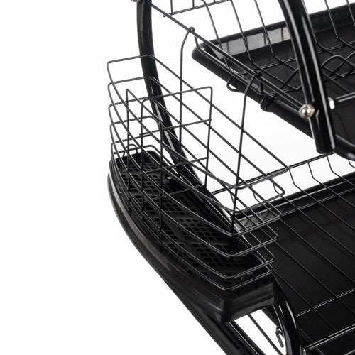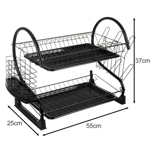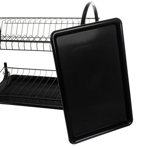 Divlīmeņu trauku žāvētājs ar stabilu konstrukciju un modernu dizainu - divlīmeņu trauku žāvēšanas statīvs ir izgatavots no izturīga dzelzs, pārklāts ar melnu pulverkrāsojumu, kas ne tikai nodrošina modernu izskatu, bet arī aizsargā pret koroziju. Elegantā melnā krāsa lieliski iederas dažādos virtuves stilos, piešķirot industriālu, modernu raksturu. Stabila konstrukcija garantē stabilitāti pat ar pilnu trauku slodzi. Komplektā ietilpst skrūves un atslēga, kas ļauj ātri un vienkārši salikt žāvētāju, un viss ir veidots, domājot par ilgstošu lietošanu. Divlīmeņu izkārtojums - žāvētājam ir divi līmeņi, kas ļauj ērti uzglabāt lielu skaitu trauku. Augšējais līmenis ir īpaši izstrādāts, lai tajā varētu ievietot 16 šķīvjus, kas ļauj optimāli izmantot telpu. Apakšējā daļa ir ideāli piemērota lielāku trauku, piemēram, salātu bļodu, bļodu, krūzīšu vai glāžu, žāvēšanai, kas padara žāvētāju ļoti daudzpusīgu. Pateicoties divlīmeņu konstrukcijai, trauki var žūt ātrāk un vienmērīgāk, kas saīsina to žāvēšanai nepieciešamo laiku. Abiem žāvētāja līmeņiem ir atsevišķas notecināšanas atveres. Papildu funkcijas un piederumi - žāvētāja sānos atrodas divi papildu rokturi, kas palielina tā funkcionalitāti. Vienā no turētājiem var ievietot līdz 6 krūzēm, glāzēm vai krūzītēm, ļaujot tās ērti pakārt sānos, kas ietaupa vietu uz žāvēšanas režģa. Otrais rokturis, kas aprīkots ar diviem nodalījumiem, tiek izmantots galda piederumu glabāšanai, un tam ir sava notecināšanas sistēma, kas palīdz uzturēt higiēnu un kārtību. Notecināšanas sistēmu var demontēt un viegli iztīrīt. Žāvētājs ir aprīkots ar speciāliem apakšējiem vākiem, kas izgatavoti no augstas kvalitātes polipropilēna (PP), kas papildus aizsargā virsmas pret bojājumiem. Viegli tīrāms un lietojams - katrā žāvētāja līmenī ir paplātes ar augstām malām, kas izgatavotas no augstas kvalitātes polipropilēna, kas efektīvi savāc ūdeni, novēršot tā noplūdi uz virtuves letes. Šīs paplātes var viegli izņemt un mazgāt, kas padara žāvētāja tīrības uzturēšanu ātru un vienkāršu. Pateicoties pārdomātajam dizainam, visi žāvētāja elementi ir viegli pieejami, kas atvieglo ikdienas lietošanu un tīrīšanu. Tas ir ne tikai estētisks, bet arī ļoti praktisks risinājums, kas nodrošina higiēnisku trauku uzglabāšanu. Specifikācija - krāsa: melna; materiāls: dzelzs, PP; izmēri: 37 x 53 x 25 cm; svars: 1,2 kg; Svars iepakojumā: 1,7 kg. Žāvētāja specifikācijas: krāsa: melna; materiāls: dzelzs, pp; izmēri: 37 x 53 x 25 cm; svars: 1,2 kg; svars iepakojumā: 1,7 kg; komplektā iekļauts: žāvētājs; 2 x ūdens paplāte; galda piederumu žāvētājs; stikla žāvētājs. Divlīmeņu trauku žāvētājs ar diviem sānu rokturiem lieliski iederēsies jebkurā virtuvē gan mājās, gan mazās ēdināšanas iestādēs. Tas ir ideāls risinājums virtuvēm, kurās ir svarīgi maksimāli izmantot telpu. Pateicoties kompaktajai, bet ietilpīgajai konstrukcijai, tas lieliski iederas dzīvokļos ar ierobežotu platību, un tā elegantais dizains labi iederēsies modernā interjerā. To var novietot uz virtuves letes blakus izlietnei vai skapī trauku žāvēšanai pēc mazgāšanas. brīdinājuma saturs: 1. pārliecinieties, ka žāvētājs ir novietots uz stabilas un līdzenas virsmas, lai novērstu tā apgāšanos. 2. nepārslogojiet žāvētāju. vienmērīgi izvietojiet traukus abos līmeņos, lai izvairītos no pārslogošanas vienā no tiem. 3. lietojiet paredzētajam mērķim. 4. žāvētājs regulāri jātīra, lai novērstu pārtikas daļiņu un baktēriju uzkrāšanos. izmantojiet maigus tīrīšanas līdzekļus. 5. Turiet žāvētāju bērniem nepieejamā vietā, lai izvairītos no nejaušas apgāšanās vai traumām. 6. Nepārveidojiet ierīci. 7. Regulāri pārbaudiet, vai ūdens no žāvētāja tiek novadīts izlietnē vai citā piemērotā vietā, lai izvairītos no ūdens uzkrāšanās.