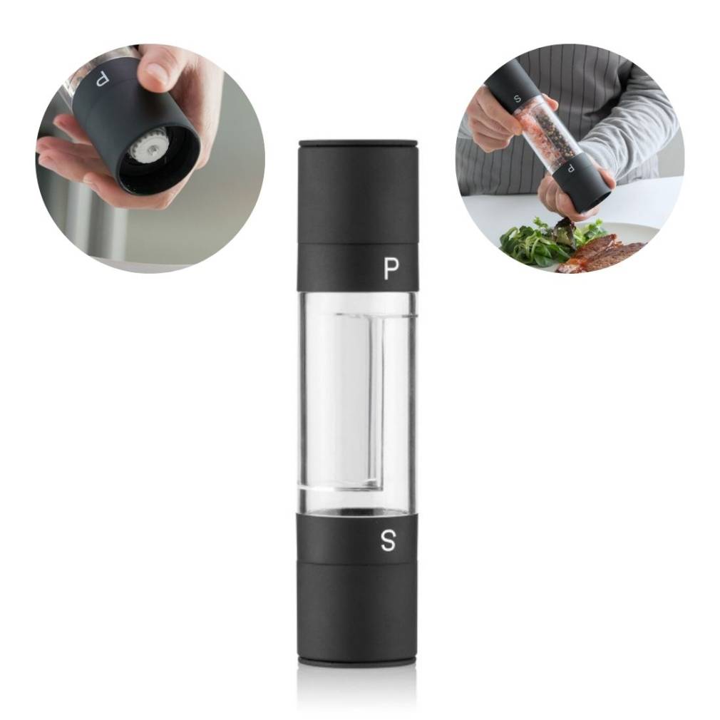 * Tam ir divi nodalījumi ar skrūvējamiem vāciņiem sāli un pipariem.