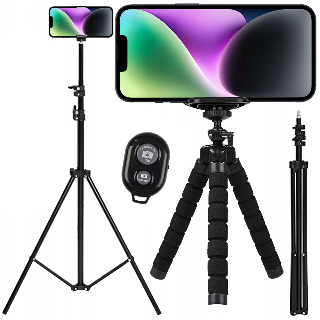 Statīvu komplekts telefonam, divu trīskāju komplekts ar telefona turētāju un tālvadības pulti