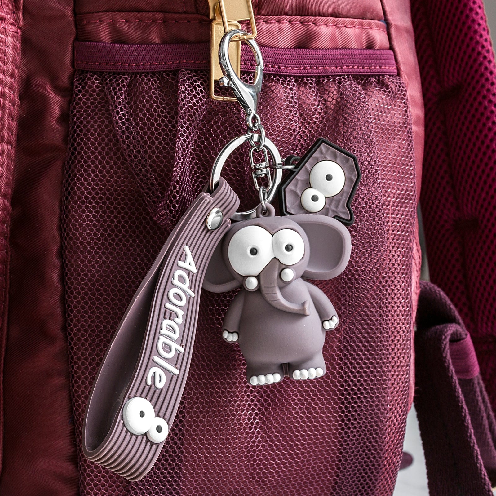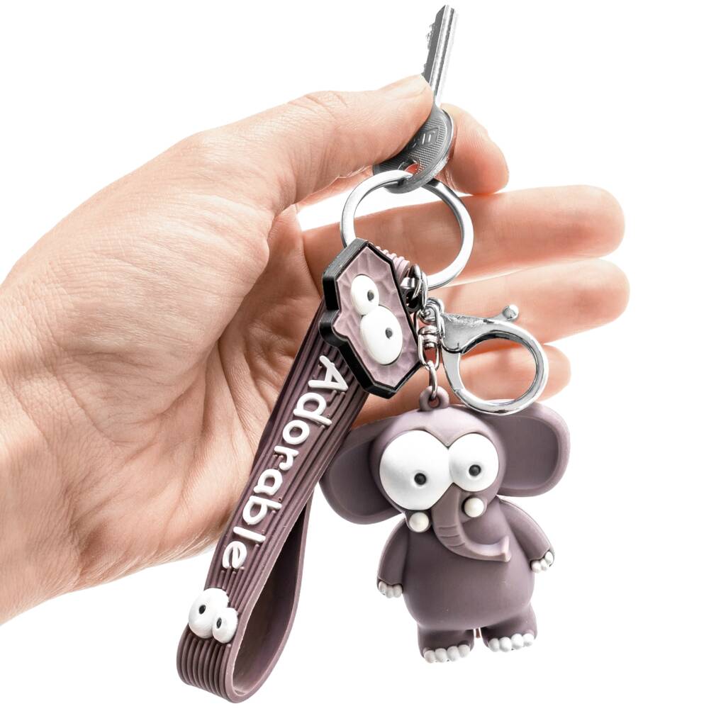 Jauks 3D atslēgu piekariņš uzkrītošā dzīvnieku dizainā, smieklīgs, praktisks un pārnēsājams :) Funkcijas: - jauks 3D ziloņa formas atslēgu piekariņš ar smieklīgi lielām acīm - materiāls: elastīga plastmasa, patīkams pieskāriens - ar metāla gredzenu un karabīni, ar gumijas siksniņu un birku, gan ar jocīgi lielām acīm - mīļa forma un praktisks priekšmets - atslēgām, pendrives un citām mantām - ziloņa izmērs: 5,5x3x5,5cm - siksniņas izmērs: 10x2,5 cm - birkas izmērs: 3x3 cm - atslēgu piekariņa garums ar metāla gredzenu 13 cm - jauka maza dāvana - pieejami arī žirafu un zebru modeļi