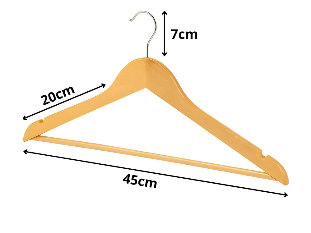 Šis elegantais 3 koka pakaramo komplekts ir praktisks un stilīgs risinājums apģērbu glabāšanai jūsu garderobē. Izgatavoti no augstas kvalitātes koka un pārklāti ar laku, pakaramie ir izturīgi, estētiski pievilcīgi un mitrumizturīgi. Ideāli piemēroti mēteļu, jaku, kreklu, kleitu un bikšu pakarināšanai, saglabājot apģērbu kārtīgu un pasargājot to no deformācijas. Pakaramie ir aprīkoti ar kontūrētām svirām, kas pielāgojas apģērba formai, novēršot deformāciju. Papildu šķērsstienis ļauj ērti pakārt bikses vai šalles. Pateicoties to universālajam dizainam, tie iederas jebkurā garderobē un piešķir interjeram elegantu pieskārienu. Koka pakaramo komplekts ir lieliska izvēle tiem, kas novērtē izturību un estētiku garderobes organizēšanā. Tie labi iederēsies gan mājās, gan profesionālā vidē, piemēram, veikalos vai viesnīcās. Izturīgi un funkcionāli koka pakaramie ir praktisks aksesuārs, kas atvieglo ikdienas apģērbu organizēšanu. Tehniskās specifikācijas: - augstas kvalitātes apstrāde - · universāls - āķa augstums: - kopējais garums: - roku garums: - speciāli turētāji apģērbiem uz plecu lencēm - bikšu stieņa komplektā ietilpst: - 3 koka pakaramo komplekts