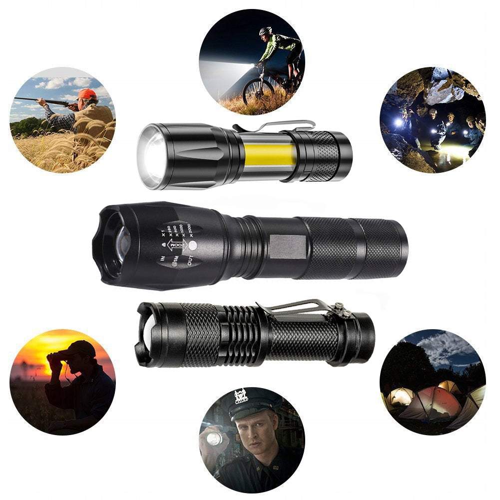 Mūsu lukturīšu komplekts ir ļoti noderīgs tumšu vietu vai apgabalu apgaismošanai naktī. To var izmantot arī kā avārijas rīku , ja nav pieejams cits gaismas avots. Lukturi ir īpaši noderīgi, ejot pa tumšu mežu vai šķērsojot tumšu ēku. Lukturi būs noderīgi tādās profesijās kā automehāniķis, elektriķis vai nirējs, kur nepieciešama koncentrēta gaismas plūsma.