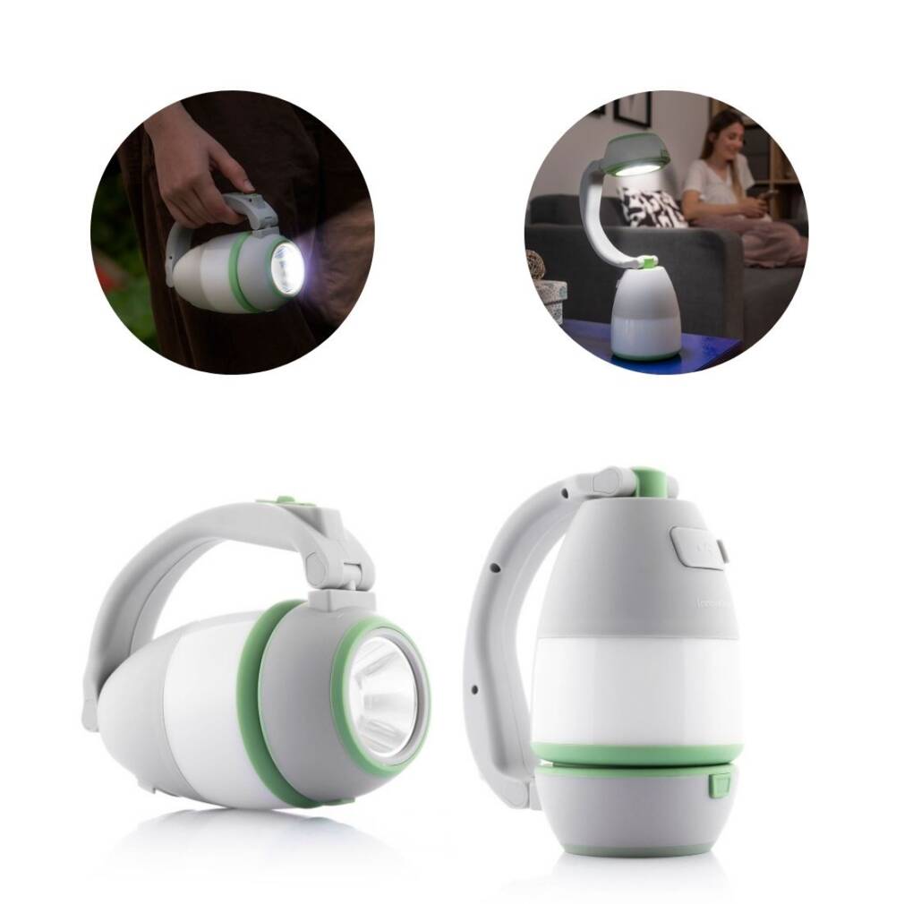 ierīce, kas darbojas kā lāpa, galda lampa, galda laterna un strāvas banka. Tas