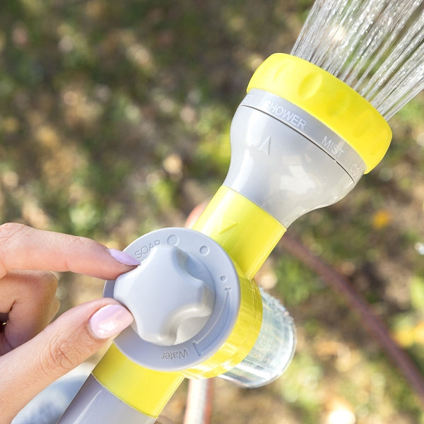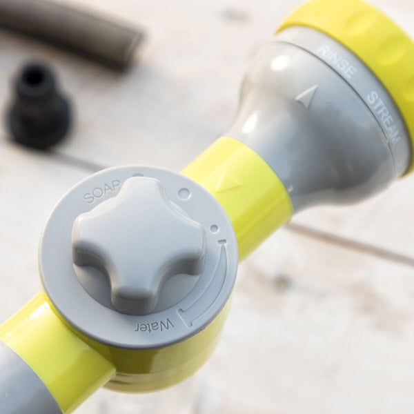 kontrolēt ūdens spiedienu un izvēlēties ziepju vai mēslojuma plūsmu atkarībā no