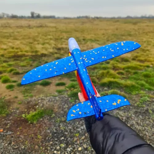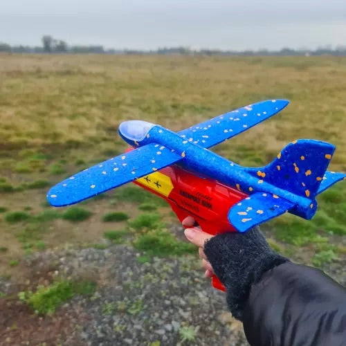 Šajā komplektā ietilpst lidmašīna un palaišanas pistole. Lidmašīna, kas aprīkota ar LED, ir izgatavota no putupolistirola, tāpēc tā ir super viegla un var lidot tālu. Turklāt lieliskais fona apgaismojums ļauj izklaidēties tumsā!