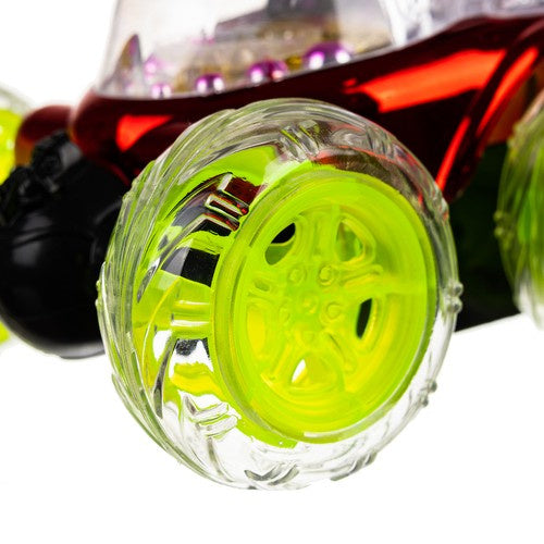 Aktobata neapgāžasošā, dejojošā automašīna ar tālvadības pulti - komplektā ietilpst tālvadības pults, ar kuru mēs varam viegli vadīt automašīnu. Tālvadības pults ir ļoti intuitīvi lietojama, tāpēc pat mazs bērns to var tikt galā. Neticama akrobātika – automašīna ne tikai brauc uz priekšu, atpakaļ un griežas. Tā arī veic daudzas aizraujošas akrobātikas, kas izklaidēs ikvienu. Automašīna var veikt salto, mainīt riteņus, pagriezties par 360° ap savu asi un veikt daudzas citas interesantas figūras. Automašīnas labākā īpašība ir tā, ka tā vienmēr stāv uz riteņiem. Gaismas efekti – neticamu akrobātiku pavada intensīvi gaismas efekti, kas padara jautrību vēl pievilcīgāku un emocijām bagātāku, īpaši, kad gaismas ir izslēgtas. Gaismas atrodas gan uz automašīnas jumta, gan uz tās caurspīdīgajiem riteņiem. Augšupielādēta mūzika – kas gan būtu traka akrobātika bez mūzikas? Augšupielādēta mūzika padara jautrību vēl interesantāku, un akrobātika izraisa vēl vairāk smieklu stundām ilgi. Rotaļāšanās ar spēlējošu akrobāta automašīnu nekad nekļūst garlaicīga! Specifikācija – krāsa: sarkana; frekvence: 40 MHz; Akumulatora barošana: iebūvēta baterija (1x AA 500 mAh); uzlāde: caur USB kabeli (iekļauts komplektā); tālvadības pults barošana: 2 x AA baterijas (nav iekļautas komplektā); maks. diapazons: 20 m; uzlādes laiks: 4 h; braukšanas laiks: 20 minūtes; tālvadības pults platums: 10,5 cm; kabeļa garums: 70 cm; automašīnas izmēri: 13 x 15 x 13 cm; svars: 0,235 kg; svars iepakojumā: 0,497 kg. Komplekta specifikācija: krāsa: sarkana; frekvence: 40 MHz; akumulatora barošana: iebūvēta baterija (1x AA 500 mAh); uzlāde: caur USB kabeli (iekļauts komplektā); tālvadības pults barošana: 2 x AA baterijas (nav iekļautas komplektā); maks. Diapazons: 20 m Uzlādes laiks: 4 h Braukšanas laiks: 20 minūtes Tālvadības pults platums: 10,5 cm Kabeļa garums: 70 cm Automašīnas izmēri: 13 x 15 x 13 cm Svars: 0,235 kg Svars iepakojumā: 0,497 kg Komplektā iekļauts virpuļmašīnas uzlādes kabelis Akumulatora pilotmašīnas funkcijas Braukšana uz priekšu un atpakaļ Pagrieziens pa kreisi vai pa labi Akrobātika Gaismas uz automašīnas jumta Gaismas caurspīdīgos apļos Papildu riteņi akrobātikas veikšanai uz jumta Brīdinājuma saturs: - nav piemērots bērniem līdz 3 gadu vecumam. - Produkts satur elementus, kurus var norīt, izraisot aizrīšanos vai traumas. - Produkts nav piemērots lietošanai pārtikā. - Nepakļaujiet skarbajiem laikapstākļiem un ugunij. - Lietojiet paredzētajam mērķim. - Neignorējiet ieteikumus attiecībā uz lietotāja vecumu. - Nelietojiet bojātu produktu. - Montāžai nepieciešams pieaugušais. - Neglabājiet nesaliktas detaļas vietās, kur bērni tām var piekļūt. - Iepakojums nav rotaļlieta. Rotaļlietu jāizsaiņo pieaugušajam, un iepakojums un tā daļas jānoņem bērnam nepieejamā vietā.