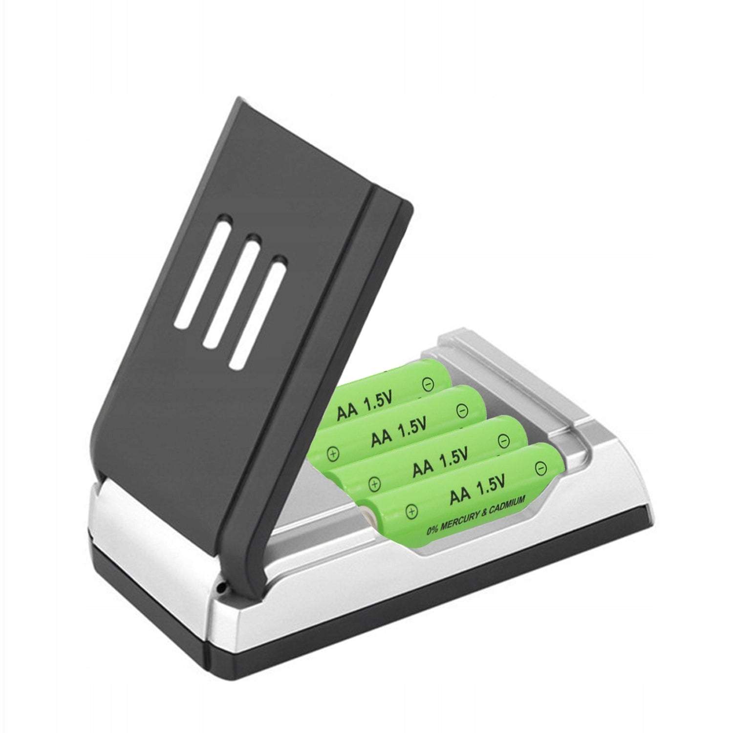 • Turklāt tā ir ierīce, kas ir saderīga ar AA un AAA baterijām, kuras parasti izmanto daudzās elektriskās ierīcēs, piemēram, tālvadības pultīs, kamerās, rotaļlietās un daudzās citās.
