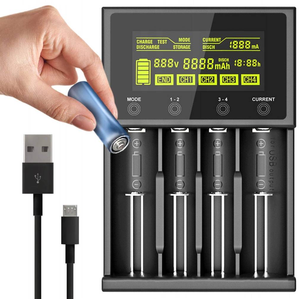 uzlādēt dažādus akumulatorus, tostarp Li-ion, IMR, LiFePO4, NiMH un Cd