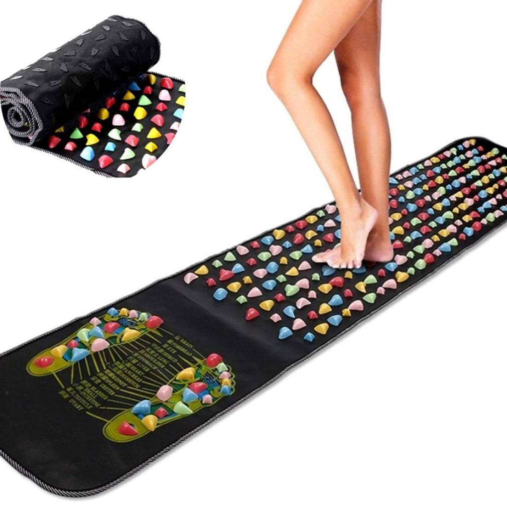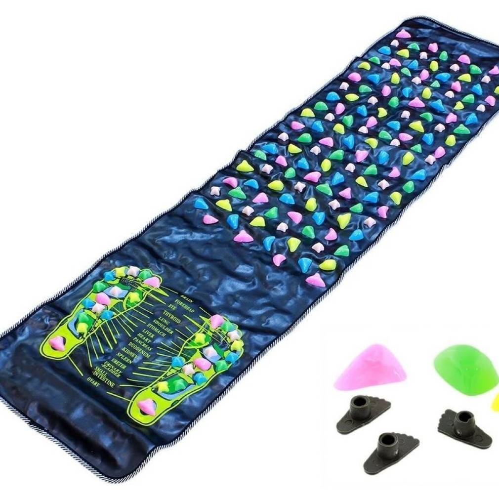 • Paklājiņš ir aprīkots ar daudziem oļiem. Masāžas laikā izdalās endorfīni, kas pozitīvi ietekmē mūsu ķermeni un pēdas.