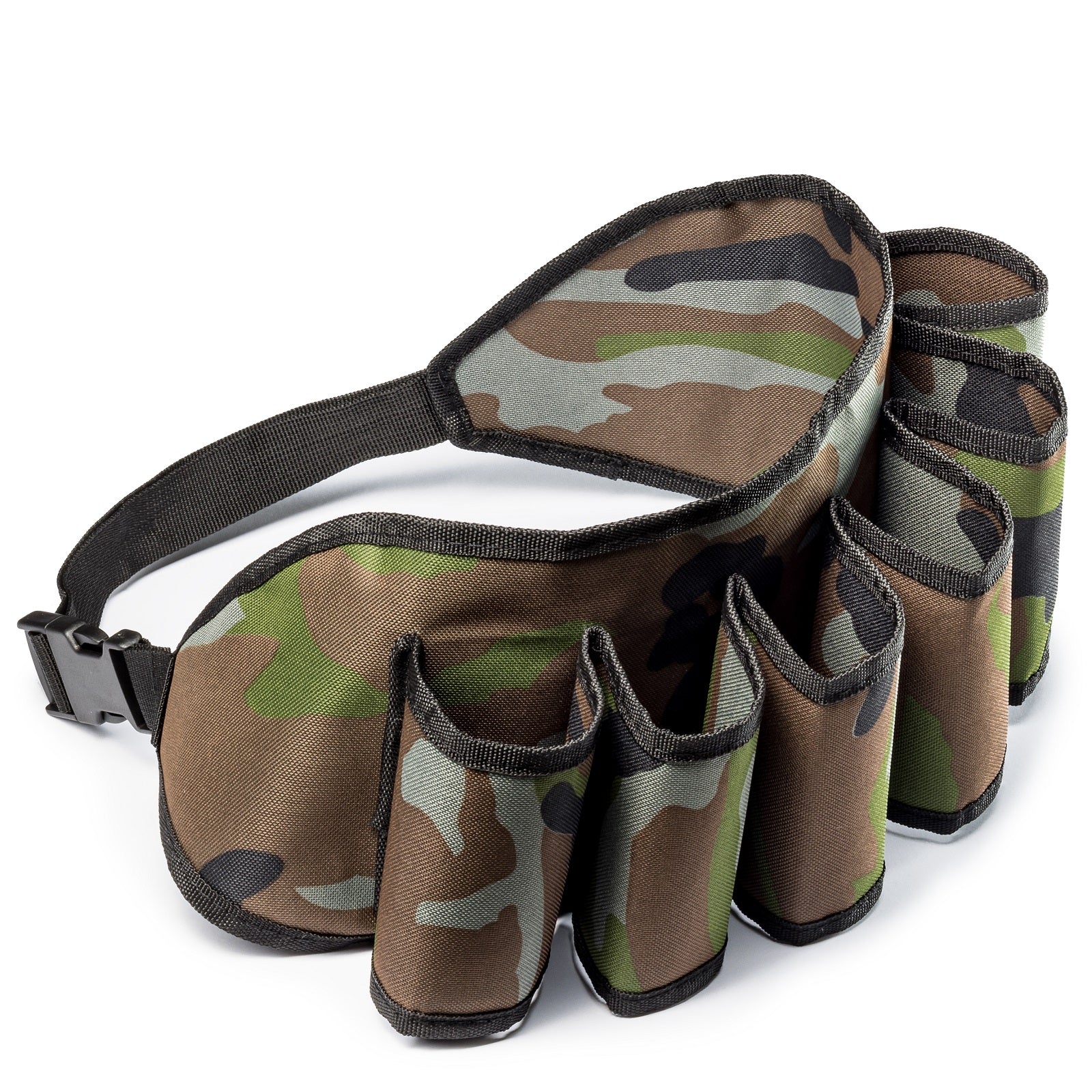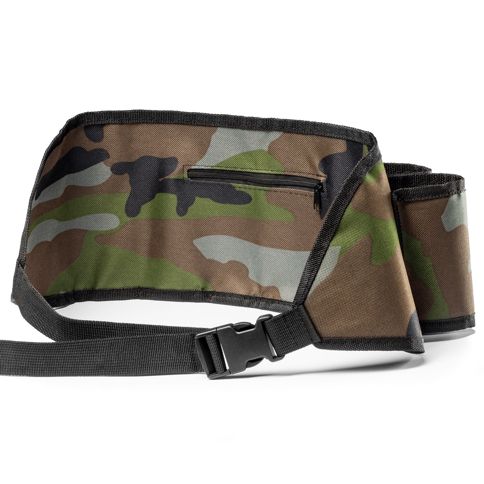 Funkcijas: - alus jostas militārā kamuflāža - ar 6 kabatām iecienītākajam dzērienam skārdenēs vai pudelēs - pielāgota josta līdz 130 cm - ar papildu rāvējslēdzēja kabatām iekšējā vietā naudai, atslēgām vai cigaretēm - krāsaina kaste 18cm x 21cm x 3 cm.
