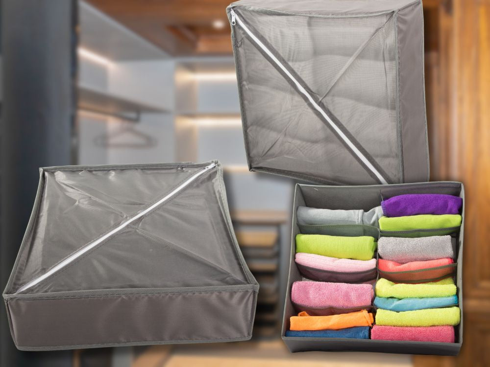 Apģērbu organizators skapja atvilktnēm ar 8 nodalījumiem 32x32x10cm? Praktisks atvilktņu organizators ar 8 nodalījumiem - pelēks. Šis funkcionālais organizators ir ideāls risinājums tiem, kas vēlas uzturēt kārtību savā skapī vai atvilktnē. Pateicoties tā pārdomātajam dizainam, tas ļauj efektīvi pārvaldīt telpu un viegli atdalīt mazus priekšmetus. ✨ Ideāla telpas organizācija ļauj ērti novietot apakšveļu, zeķes, kaklasaites, kosmētiku vai citus mazus aksesuārus. Atvērtais dizains ļauj viegli un ātri piekļūt saturam un uzturēt to kārtībā. Ideāli piemērots atvilktnēm, skapjiem, drēbju skapjiem vai plauktiem - palīdz ietaupīt vietu un sakārtot telpu. ? Izturīgs un viegli tīrāms, izgatavots no izturīga materiāla, izturīgs pret deformāciju un netīrumiem. Viegli tīrāms - vienkārši noslaukiet ar mitru drānu. Viegla konstrukcija padara organizatoru viegli pārvietojamu un pārkārtojamu. - Tehniskās specifikācijas: ✔ Produkta kods: ✔ Viegli tīrāms ✔ Organizatora malas pastiprinātas ar kartonu ✔ Plašs pielietojums ✔ Ir ✔ Organizatora izmēri: ✔ Materiāls: Poliesters ✔ Krāsa: Pelēka ? Komplektā ietilpst: - organizators ar 8 nodalījumiem - Folijas iepakojums