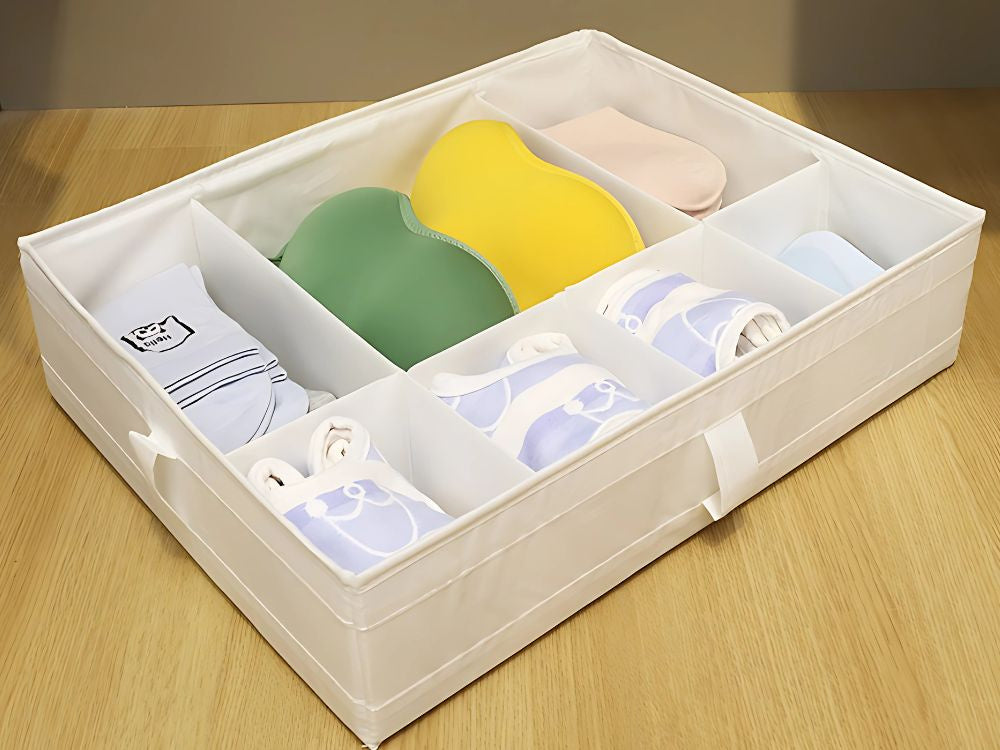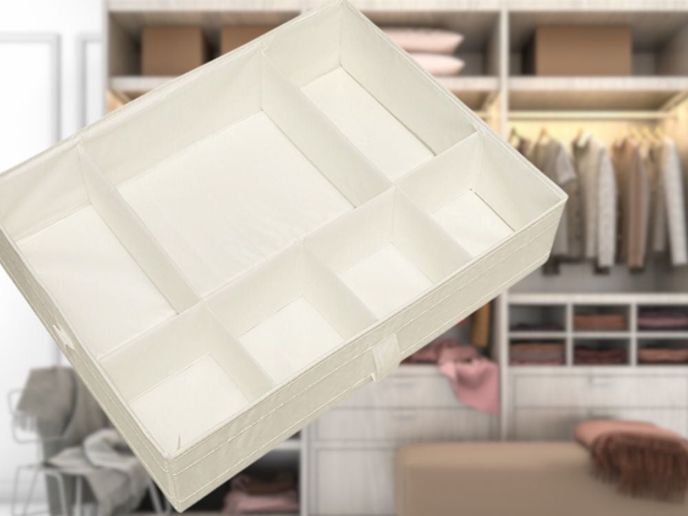 Apakšveļas organizators zeķu atvilktņu uzglabāšanas bloks, balts 44x34x11cm ? Praktisks atvilktņu organizators - balta kaste 44x34x11 cm ? Funkcionālais atvilktņu organizators ir ideāls risinājums tiem, kas vēlas uzturēt savas garderobes priekšmetus kārtīgus un organizētus. Pateicoties tā pārdomātajam dizainam ar nodalījumiem, tas ļauj ērti uzglabāt apakšveļu, zeķes, zeķubikses, kreklus vai citus aksesuārus. ? Ideāla vietas organizācija, pateicoties organizatora nodalījumiem, katram priekšmetam ir sava vieta, tādējādi atvieglojot nepieciešamo apģērbu ātru atrašanu. Ideāli piemērots lietošanai atvilktnēs, plauktos vai skapjos labākai organizācijai un kārtībai. ? Izturīgs un viegli tīrāms organizators ir izgatavots no augstas kvalitātes auduma, kas ir izturīgs pret putekļiem un netīrumiem. Ja nepieciešams, vienkārši noslaukiet to ar mitru drānu, lai tas būtu tīrs. Minimālistiskais baltais dizains iederas jebkurā interjerā, piešķirot tam glītu un elegantu izskatu. ? Funkcionāls dizains, pateicoties tā salokāmajam dizainam, organizatoru var viegli uzglabāt, kad tas netiek lietots, neaizņemot nevajadzīgu vietu. Tas ir viegls, ērts lietošanā un to var brīvi pielāgot dažādām telpām mājā. Tas būs lieliski piemērots jebkuram garderobes skapim, palīdzot uzturēt apģērbu perfektā kārtībā. - tehniskās specifikācijas: ✔ produkta kods: ✔ viegli tīrāms ✔ organizatora malas pastiprinātas ar kartonu ✔ plašs pielietojumu klāsts ✔ ir ✔ mazā pārnēsājamā skapja izmēri ✔ iegarenā pārnēsājamā skapja izmēri: ✔ lielā pārnēsājamā skapja izmēri: ✔ organizatora izmēri: ✔ materiāls: poliesters ? Komplektā ietilpst: - organizators ar 7 nodalījumiem - folijas iepakojums