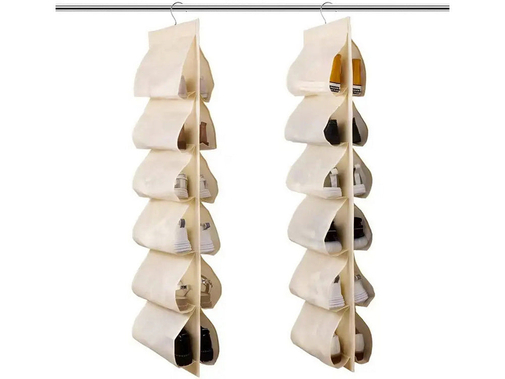 Apavu organizators skapja pakaramajam apavu plauktam 12 pāriem. Organizators ir ideāls risinājums cilvēkiem, kuri novērtē kārtību un funkcionalitāti. Ar 12 speciāli izstrādātiem pārvietojamiem plauktiem jūs varat viegli ievietot savus iecienītākos apavu pārus, vienlaikus saglabājot kārtību savā skapī. Izgatavots no izturīgiem materiāliem, mūsu organizators ir stabils un ilgmūžīgs. Tāpēc jūs varat būt pārliecināti, ka jūsu apavi būs drošībā un labi pasargāti no bojājumiem. Tehniskās specifikācijas: - augsta konstrukcijas kvalitāte - elegants - izturīgs - skapim un tualetes galdiņam - pakarams - o Kopējie izmēri: - krāsa: krēmkrāsas Komplektā ietilpst: - apavu organizators