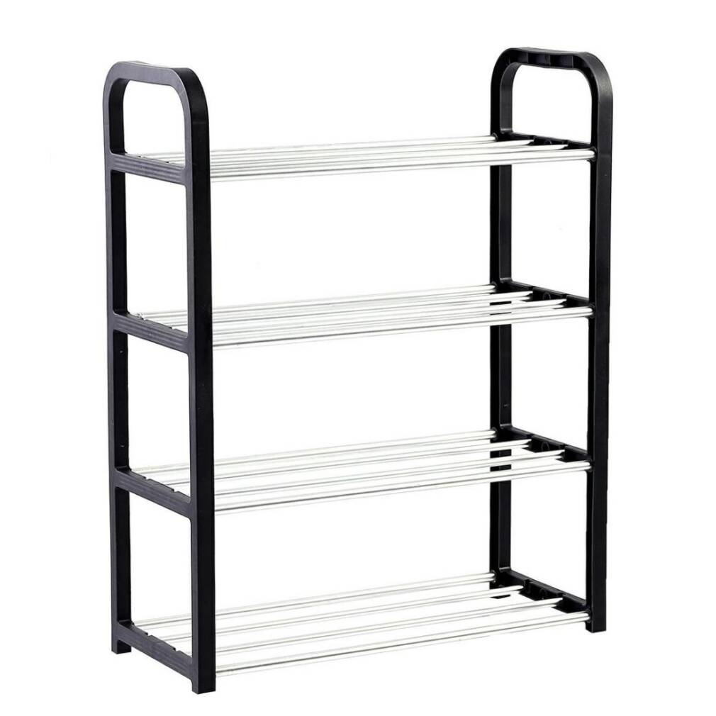 daudzlīmeņu plaukts lieliski ietaupa vietu apavu uzglabāšanai. Tam ir 4