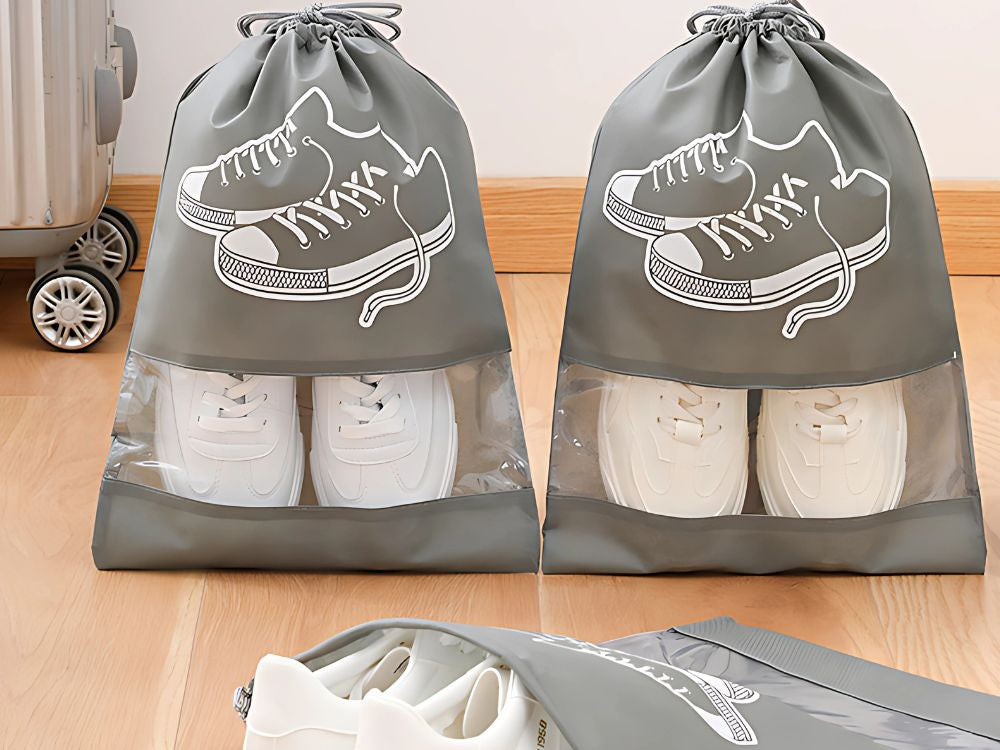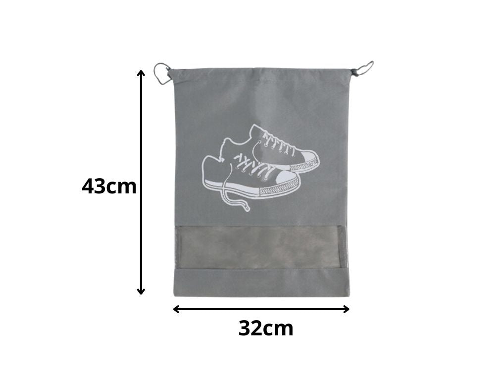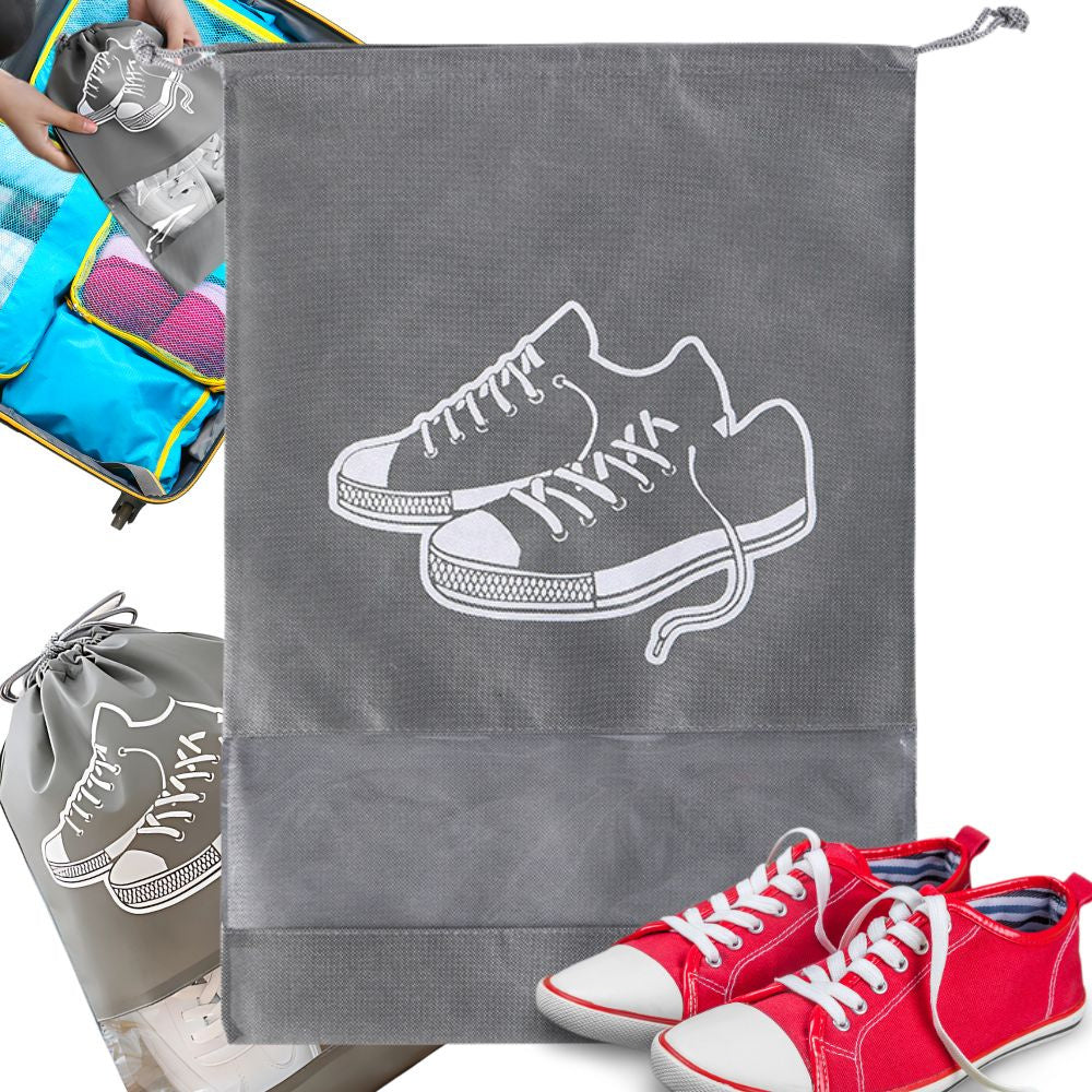 Apavu soma, apģērbu uzglabāšanas soma, ceļojumu soma ar aukliņu, pelēka? Praktiska ceļojumu soma apaviem vai apģērbam - pelēka 43x31 cm. Šī funkcionālā ceļojumu soma, izmēri , ir ideāls risinājums tiem, kas novērtē kārtību ceļojumu laikā. Izgatavota no augstas kvalitātes materiāla, tā nodrošina apavu vai apģērba aizsardzību pret netīrumiem un bojājumiem. ✨ Ideāla vietas organizācija: soma palīdz uzturēt jūsu čemodānu, ceļojumu somu vai mugursomu kārtīgu. Tā ļauj atdalīt apavus no citām mantām, pasargājot tos no netīrumiem. Tā ir arī lieliski piemērota apģērbu, apakšveļas vai aksesuāru glabāšanai mājās. ? Izturīgs materiāls un ērta lietošanā; soma ir izgatavota no izturīga auduma, kas ir izturīgs pret nodilumu un netīrumiem. Aukliņa atvieglo aizvēršanu un atvēršanu, un caurspīdīgais lodziņš ļauj ātri atrast saturu. Vieglā konstrukcija padara somu vietu taupošu un viegli iesaiņojamu. - Tehniskās specifikācijas: - viegli uzturēt tīru - elpojošs materiāls - izturīga - aukliņas aizdare - var izmantot apavu vai citu priekšmetu glabāšanai - izmēri: ? Komplektā ietilpst: - apavu kaste