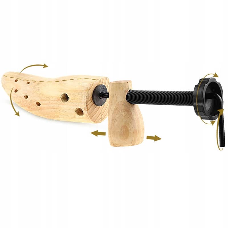 Šis apavu taisnotājs ir universāls, kas der visu veidu apaviem. Produkts ir izgatavots no koka un metāla, un tā izmēri ir 43 cm x 15 cm x 11 cm. Tie ir piemēroti apavu izmēram 39-41.