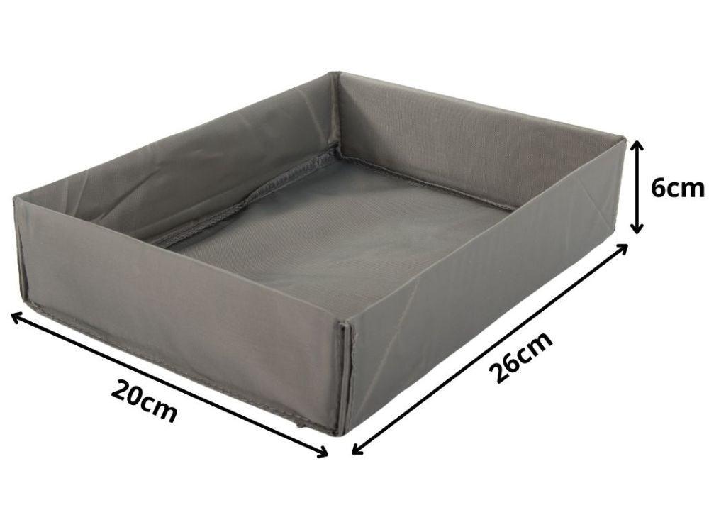 Apģērbu organizators skapja atvilktnei, pelēks, universāls, 26x20x6cm? Universāls organizators 26x20x6cm - ideāla organizācija jūsu mājās. Piedāvājam praktisku un estētiski pievilcīgu organizatoru ar izmēriem 26x20x6 cm, kas palīdzēs uzturēt kārtību atvilktnēs, plauktos vai skapjos. Tā universālais dizains padara to ideāli piemērotu dažādu priekšmetu, piemēram, apakšveļas, zeķu, aksesuāru vai kosmētikas, glabāšanai. ✨ Ideāla telpas organizācija. Organizators ļauj ērti novietot apakšveļu, zeķes, kaklasaites, kosmētiku vai citus mazus aksesuārus. Atvērtais dizains ļauj viegli un ātri piekļūt saturam un uzturēt to kārtībā. Ideāli piemērots atvilktnēm, skapjiem, skapjiem vai plauktiem - palīdz ietaupīt vietu un sakārtot telpu. ? Izturīgs un viegli tīrāms, izgatavots no izturīga materiāla, izturīgs pret deformāciju un netīrumiem. Viegli tīrāms - vienkārši noslaukiet ar mitru drānu. Viegla konstrukcija padara organizatoru viegli pārvietojamu un pārkārtojamu. - tehniskās specifikācijas: ✔ Produkta kods: ✔ Viegli tīrāms ✔ Organizatora malas pastiprinātas ar kartonu ✔ Plašs pielietojums ✔ Organizatora izmēri: ✔ Materiāls: poliesters ? Komplektā ietilpst: - organizators - folijas iepakojums