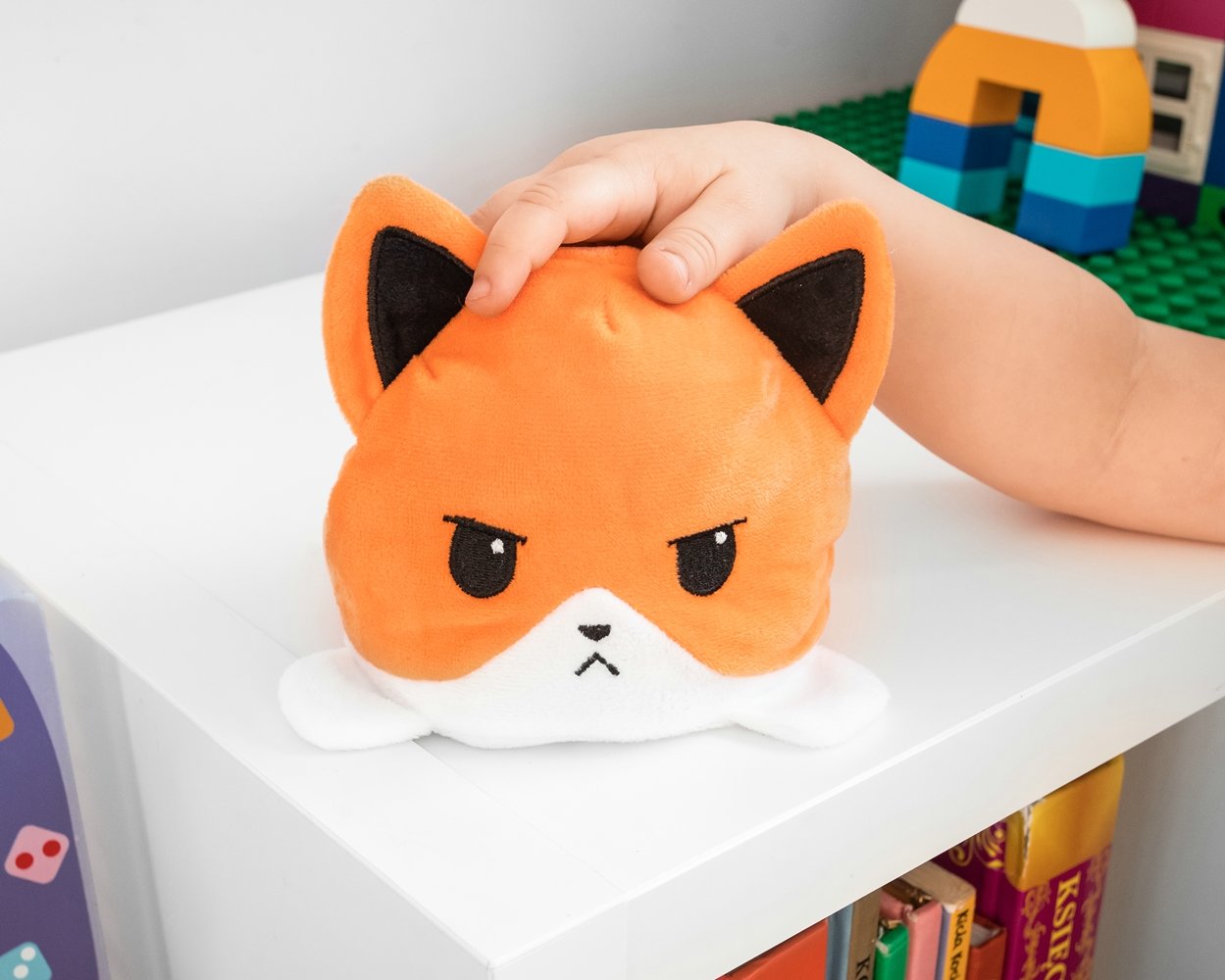 Apgriežama plīša rotaļlieta var palīdzēt uzmundrināt jūsu bērnu skumjo seju un likt viņiem atkal smaidīt :) Tā ir abpusēja, un viegli un ātri varat pārvērst no skumjas uz smaidīgu seju. Rotaļlieta palīdz arī izteikt emocijas un parāda, ka tās var mainīt tikpat ātri, cik rotaļlietu var apgriezt, lai smaidītu seju. Funkcijas: - apgriežama abpusēja plīša rotaļlieta - ātri pārslēgt no skumjas uz smaidošu seju - palīdz izteikt emocijas un amp; uzmundrināt - bērniem tas patīk - ar smieklīgu asti