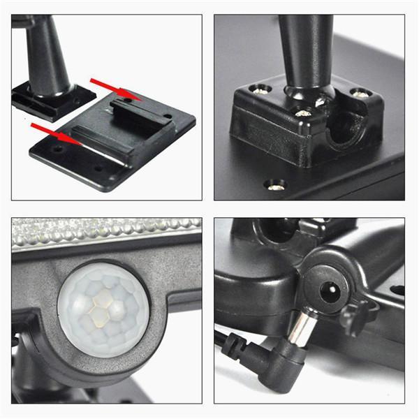120 īpaši spilgtas gaismas diodes + saules panelis (vads ir 5 metrus garš), iebūvēts kustības sensors – gaisma ieslēdzas tikai tad, kad detektora darbības rādiusā tiek uztverta kustība.
