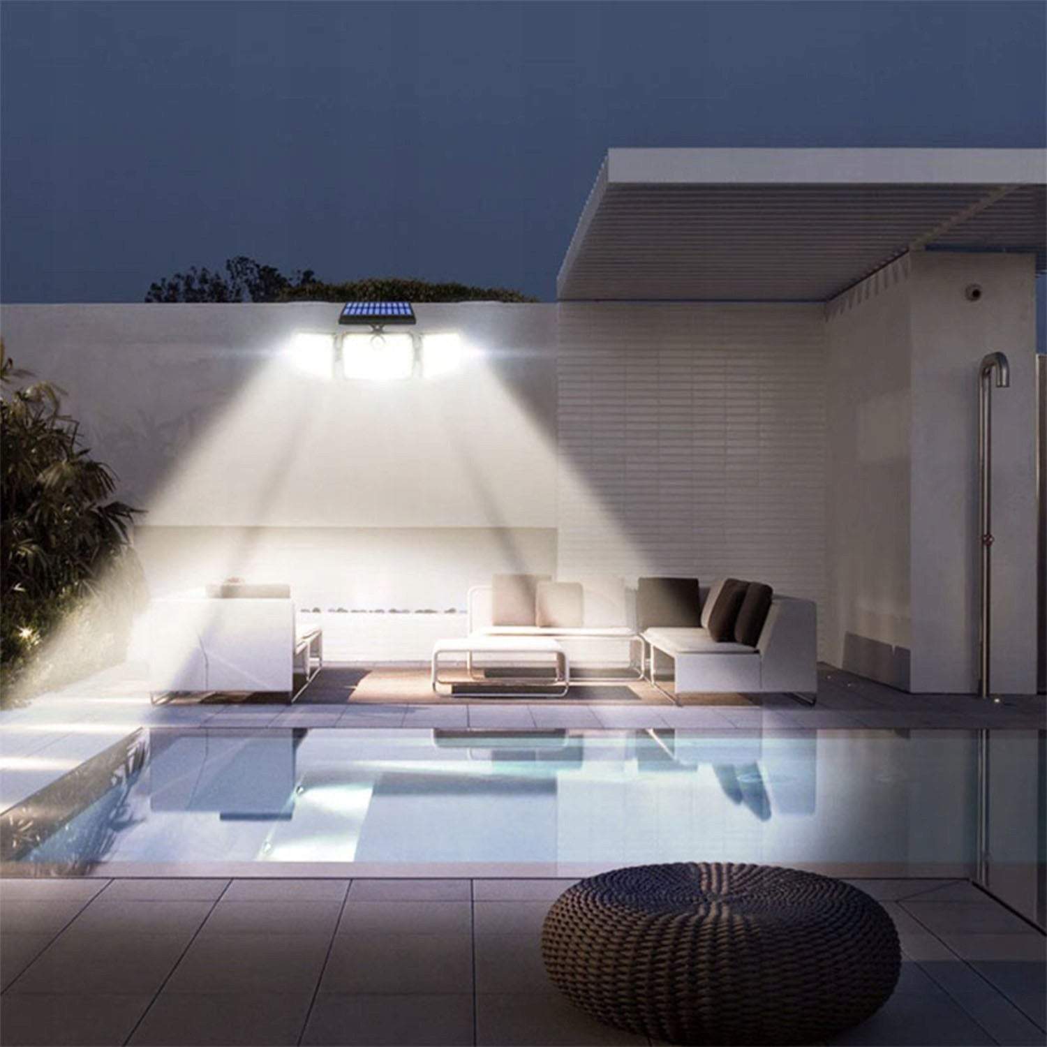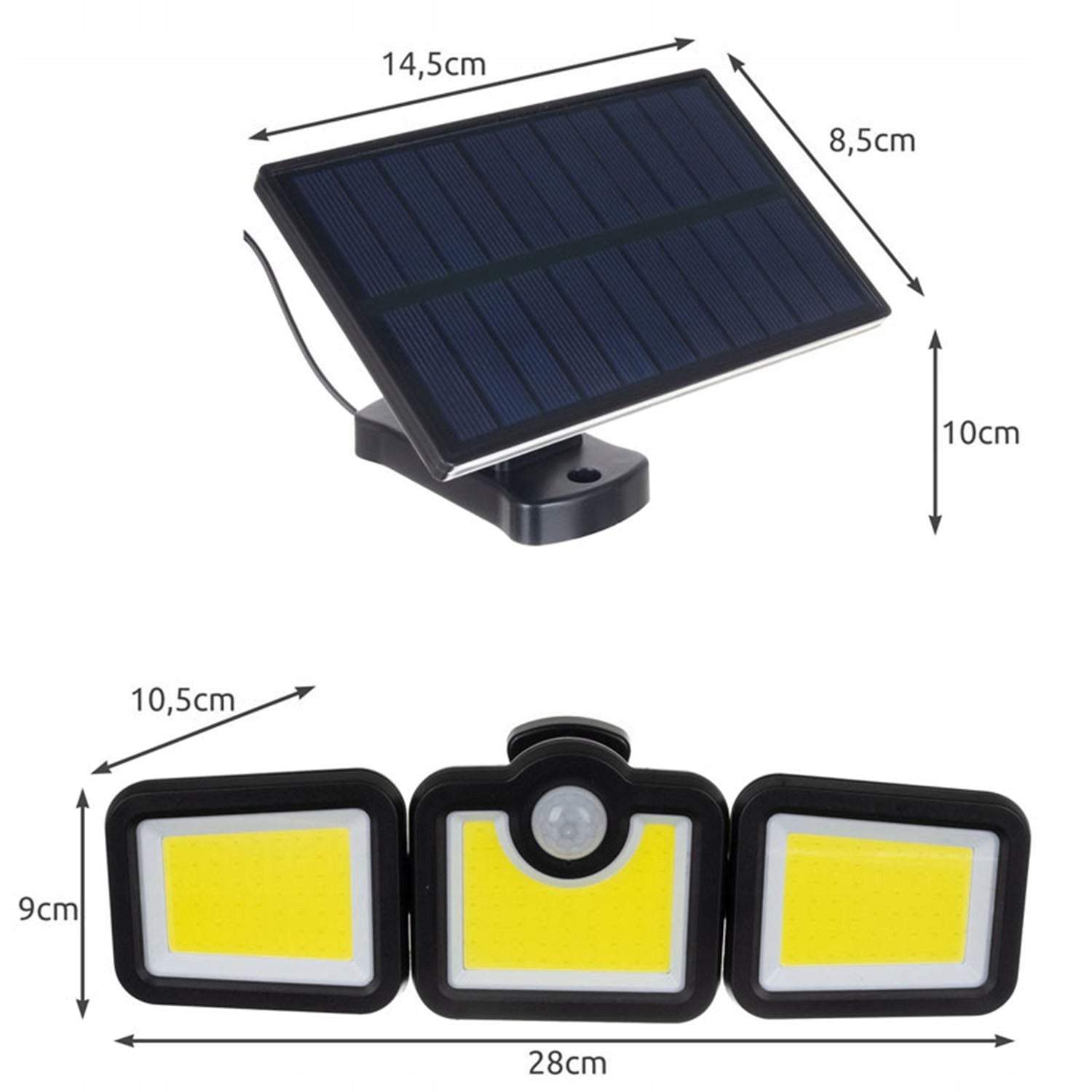 Āra lampa ar saules paneli un tālvadības pulti 108 COB LED, trīs segmenti