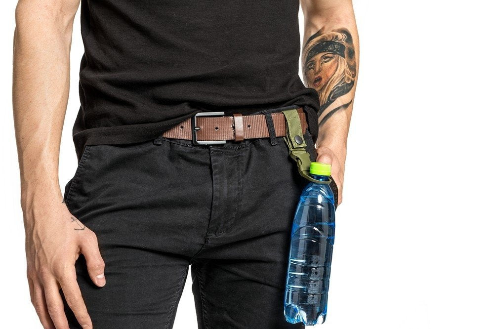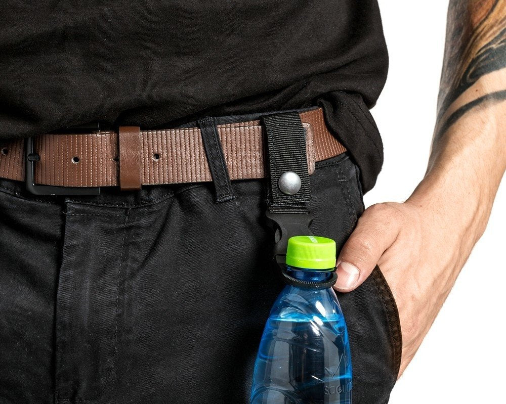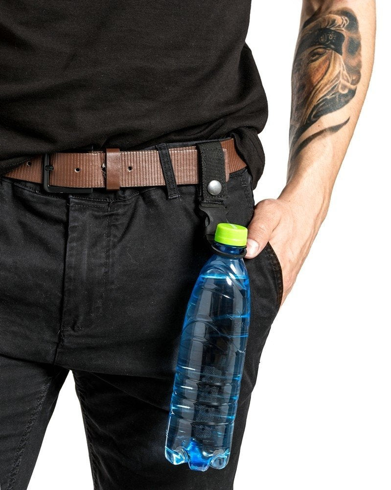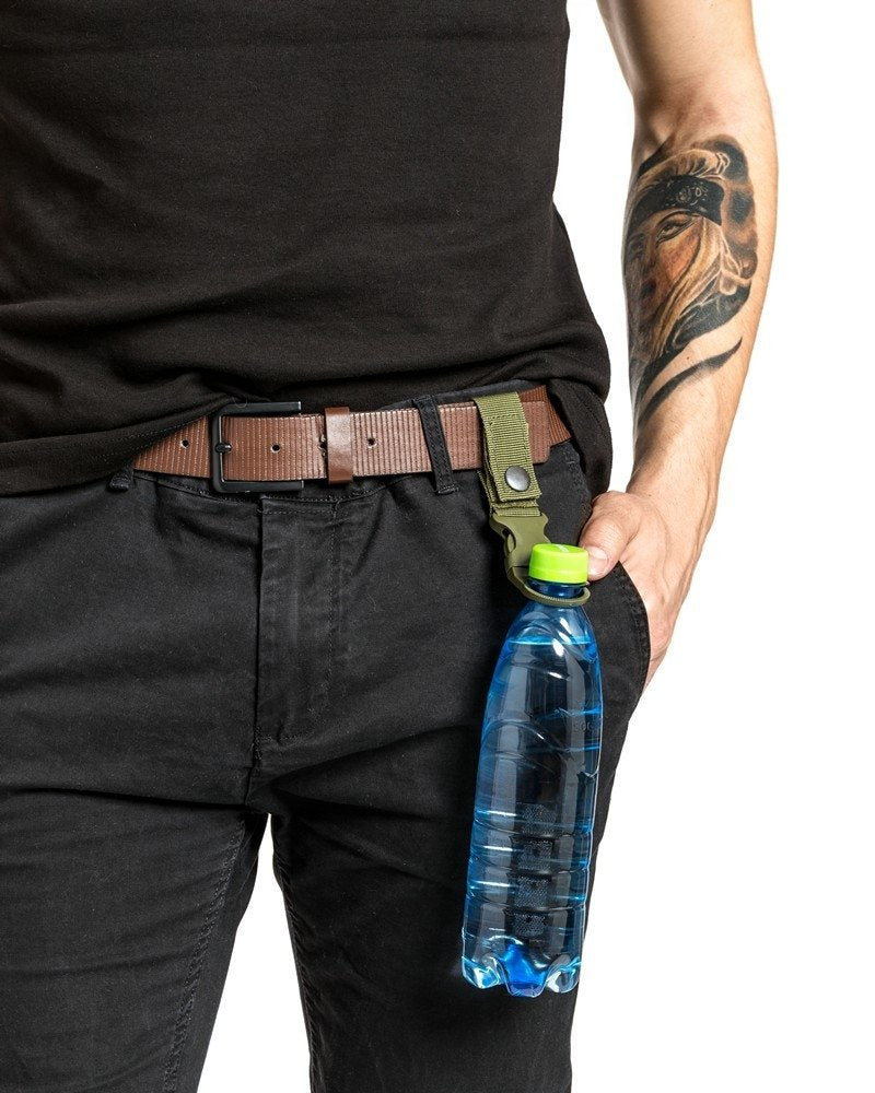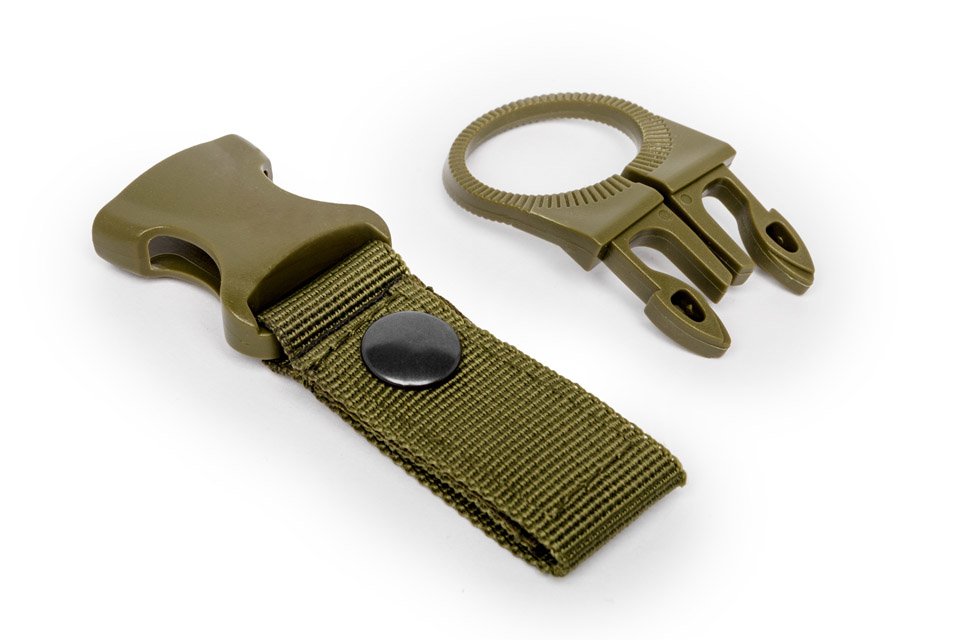 Āra pudeļu sprādzes komplekts 2 gab. Praktiskais aprīkojums visiem āra braucieniem nodrošina brīvroku un ūdens pudeli pie rokas. Varat to piestiprināt pie biksēm, jostas, velosipēda vai mugursomas. Sprādzes ir savietojamas ar stiprinājuma sistēmu MOLLE. Funkcijas: - sprādzes brīvroku pudelei, nēsājot 2 gab. komplektu - piestiprināmas pie biksēm, jostas, mugursomas vai velosipēda - jostām, kuru platums ir mazāks par 5 cm - saderīgs ar stiprinājuma sistēmu MOLLE - 2 gab komplekts - krāsas: 1 x melna un 1 x zaļa - materiāli: neilons un plastmasa