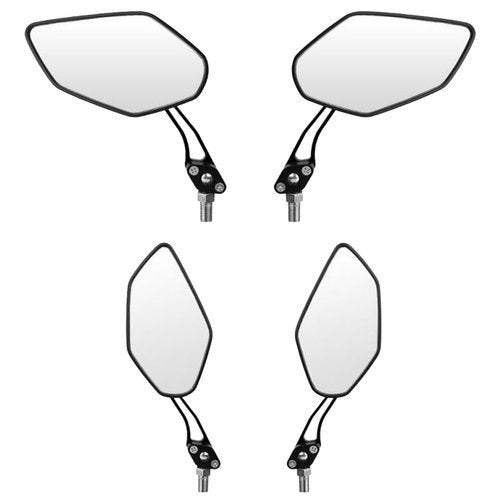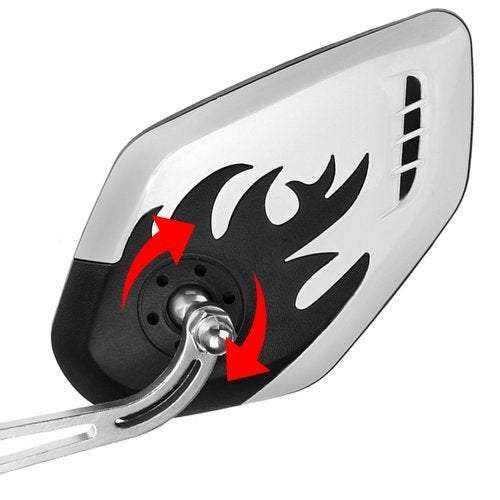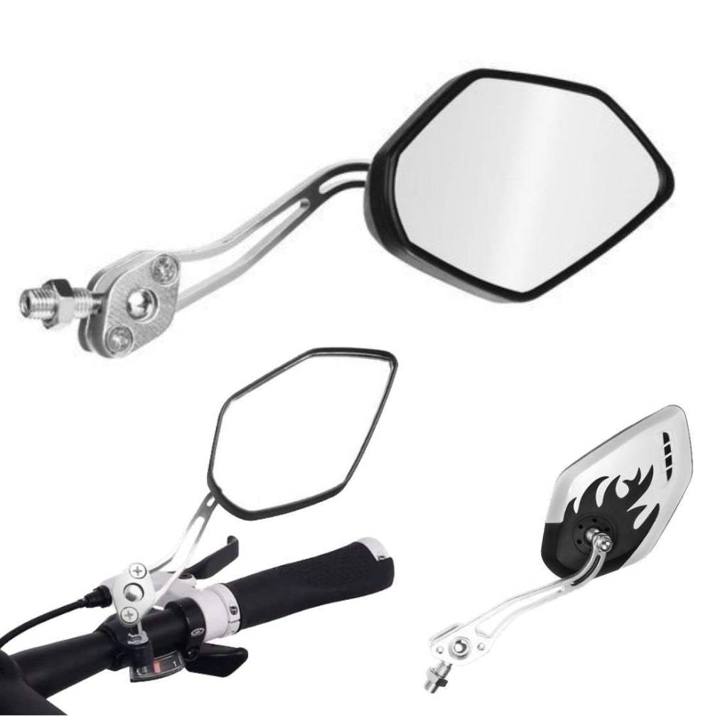 Šie spoguļi ir izstrādāti, lai palīdzētu jums redzēt objektus, kas tuvojas no aizmugures un sāniem, tādējādi atvieglojot sagatavošanos garāmbraukšanai un pagriezienam. Plašs skata leņķis: Neskatoties uz to nelielo izmēru, šie spoguļi piedāvā plašu skata leņķi, nodrošinot pilnīgu skatu uz apkārtni braukšanas laikā.