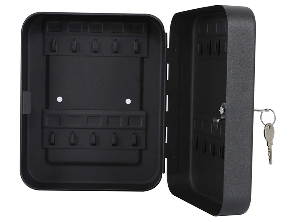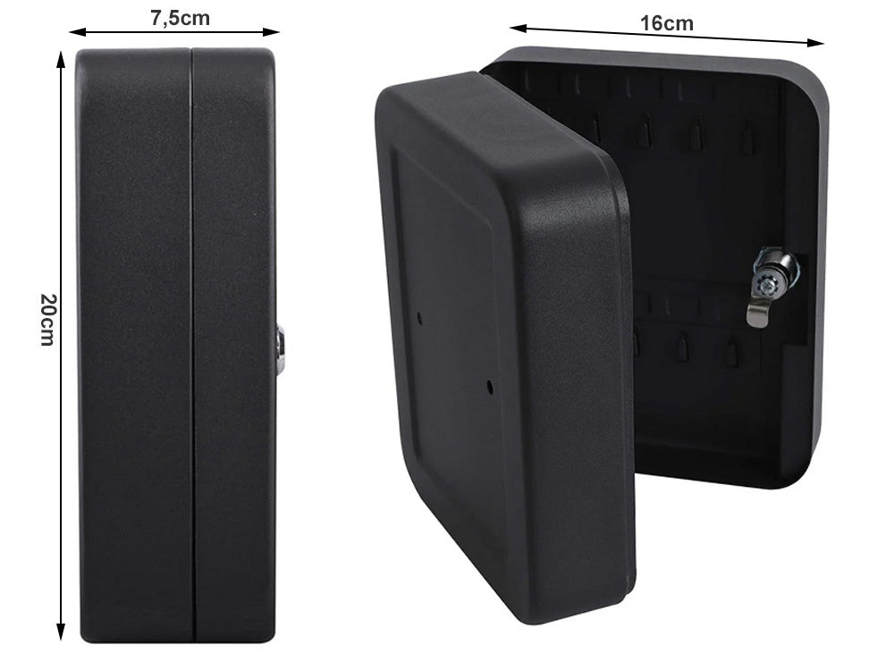 Metāla atslēgu seifs 20 atslēgu pakaramajiem ar āķiem glabājiet savas atslēgas kārtīgas un drošas ar šo izturīgo un praktisko metāla kasti. Ideāli piemērots birojiem, darbnīcām, viesnīcām, noliktavām, kā arī lietošanai mājās. - Kārtīgs un organizēts: paplāte ļauj ērti uzglabāt līdz 20 atslēgām vienuviet. - Drošība: izturīgā atslēgu slēdzene aizsargā atslēgas no nesankcionētas piekļuves. - Izturība: metāla konstrukcija nodrošina izturību un izturību pret bojājumiem. - Praktiskums: uzlīmes uz atslēgu piekariņiem ļauj ātri atpazīt atslēgas. - Daudzpusība: ideāli piemērots uzņēmumiem, mājsaimniecībām, skolām, viesnīcām un daudzām citām vietām. - Atslēgu izvietojums kastē: . Tehniskās specifikācijas: - Simbols: - Izgatavots no augstas kvalitātes materiāliem - Izturīgs lokšņu metāls - Izturīgas eņģes - Komplektā divas atslēgas - Atslēgu āķi - Uzlīmes atslēgu parakstīšanai - Birkas ar vietu atslēgu parakstīšanai - Pakaramie jauktā krāsā - Krāsa: Melna Izmēri: - Augstums: - Dziļums: - Platums: Komplektā ietilpst: - Metāla atslēgu kaste - Numurētas uzlīmes - Stiprinājuma tapas un skrūves