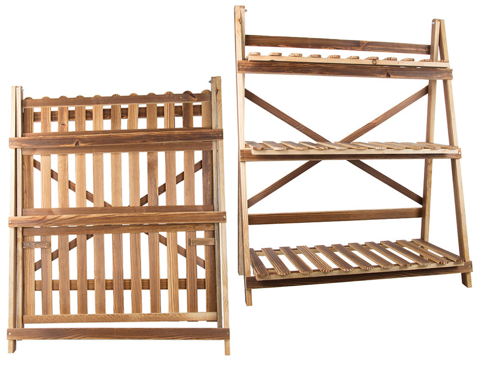 Augsta stāvoša koka puķu dobe ar 3 līmeņiem, grāmatu plaukts