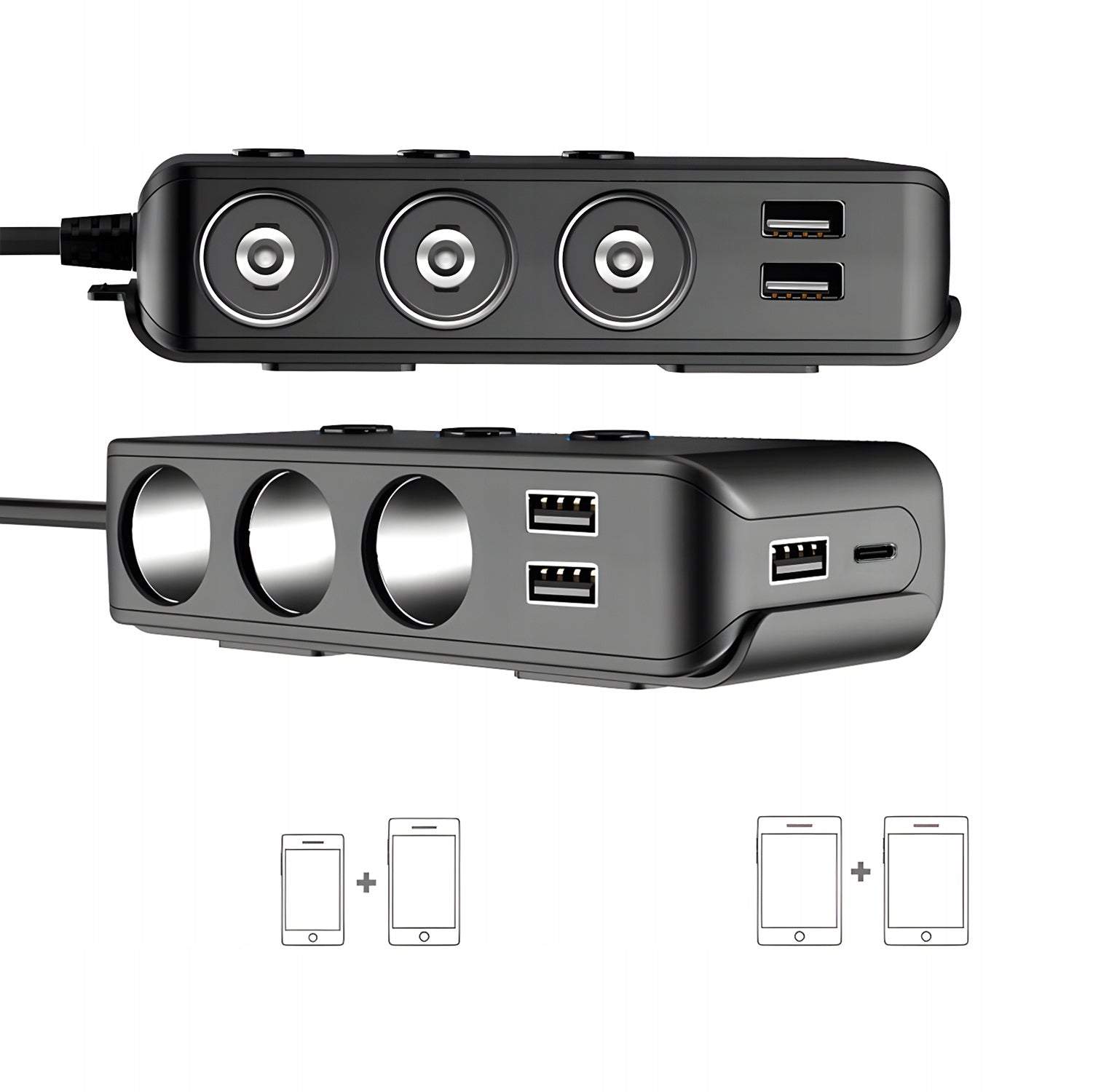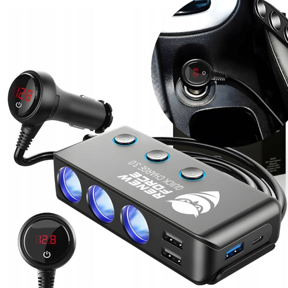 Mūsdienīga iekārta: Sadala strāvu trīs papildu portos ar 120 W maksimālo jaudu.