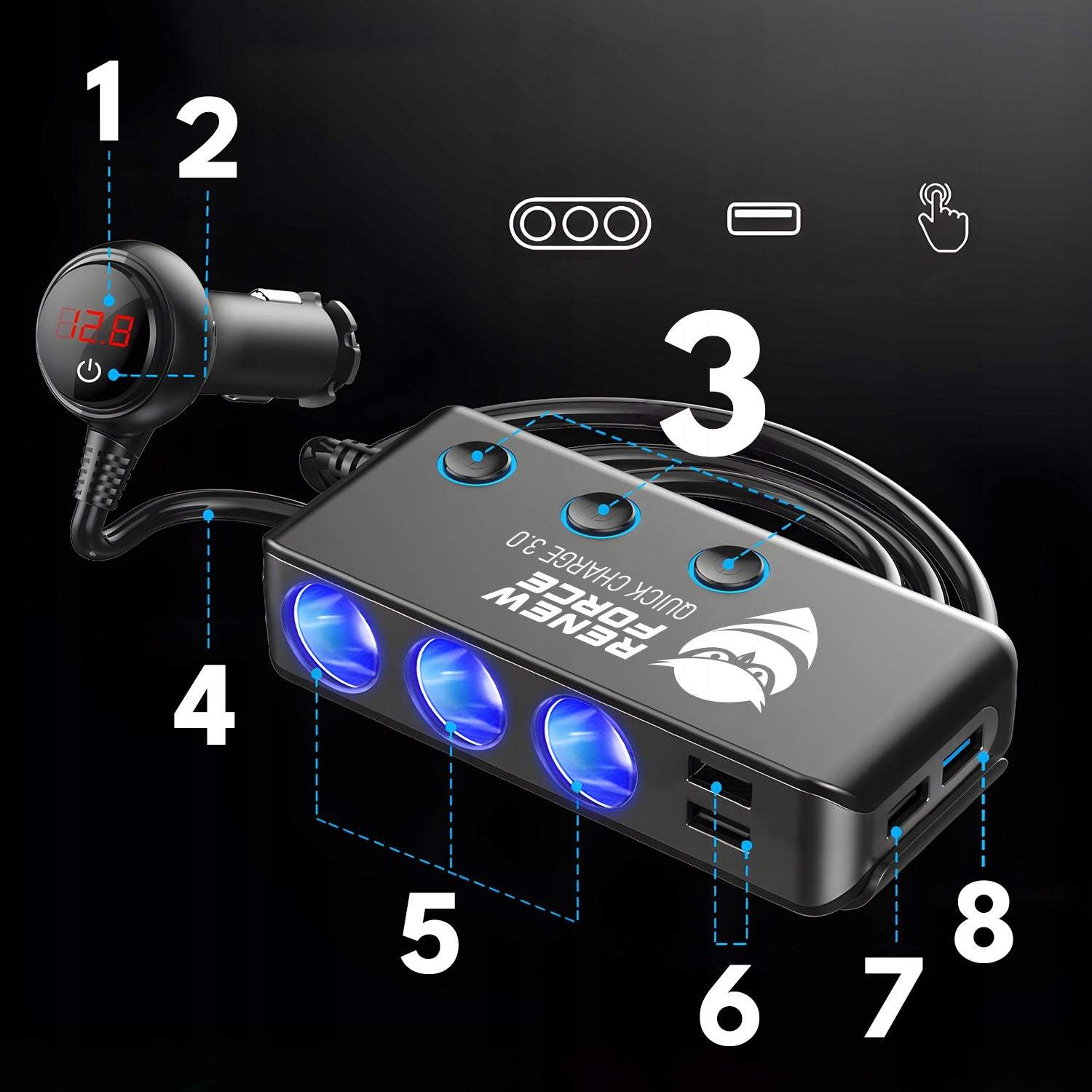 1. Ātrā uzlāde: ātri uzlādējiet viedtālruņus, planšetdatorus, GPS un citas