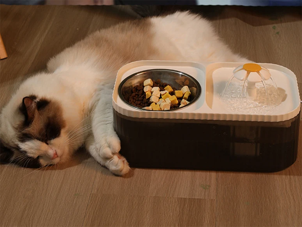 Automātiska kaķu dzirdinātava suņu ūdens strūklaka ar filtru un barības bļodu