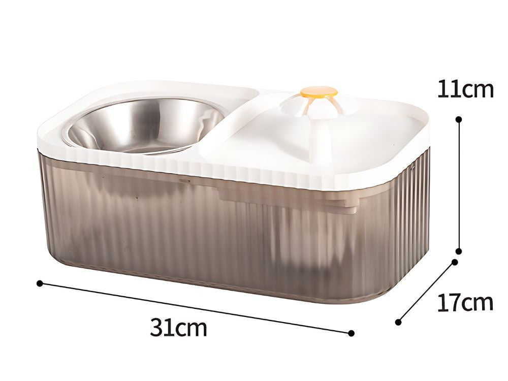 Automātiska kaķu dzirdinātava suņu ūdens strūklakai ar filtra barības bļodu - katrs mājdzīvnieku mīļotājs precīzi zina, ka viņiem patīk dzert ūdeni no krāna. Tā kā kaķi ir mednieki, viņu acis ir pielāgojušās kustības uztveršanai. Nekustīgs, caurspīdīgs ūdens spogulis bieži vien nav redzams un tāpēc jūsu kaķim tas rada mazu interesi. Universālā strūklakas bļoda piesaistīs jebkura četrkājaina dzīvnieka uzmanību. Kustīgais ūdens acumirklī piesaistīs jūsu kaķa uzmanību, jo kaķis, kā mednieks, reaģē uz katru mazāko kustību. Ja jūsu kaķim ir pieejams svaigs, auksts, burbuļojošs ūdens no strūklakas, viņš nekavējoties dzers vairāk nekā parasti. Lai rūpētos par jūsu mājdzīvnieka veselību, ierīce ir aprīkota ar aktivētās ogles filtru, kas attīra ūdeni no piemaisījumiem un bagātina to ar nepieciešamajām minerālvielām. Filtrs noņem no ūdens spalvas, barības atliekas un novērš kaļķakmens uzkrāšanos. Bļoda ir nedaudz slīpa 15 grādu leņķī. Tas atvieglo barības ēšanu. Iekārtas sastāvdaļas: strūklakas bļoda, ūdens filtrs, sūkņa tvertne, tehniskās specifikācijas: - augsta konstrukcijas kvalitāte - ūdens tvertnes tilpums: - metāla barības bļodas tilpums: - klusa sūkņa darbība - vienmērīga ūdens plūsma - iekļauts komplektā - sūkņa barošana: - barošanas avots: caur USB 5V kabeli - USB kabeļa garums: aptuveni 150 cm - sūkņa ūdensizturības klase: - maksimālā ūdens plūsma: - kabeli var pievienot lādētājam, pārnēsājamajam akumulatoram utt. - krāsa: balta. Piezīme: neieslēdziet sūkni "sausā" stāvoklī bez ūdens, jo tas var sabojāties. izmēri: - kopējais augstums ar strūklaku: - tvertnes augstums: - dziļums: - platums: komplektā ietilpst: - strūklakas bļoda - ūdens sūknis