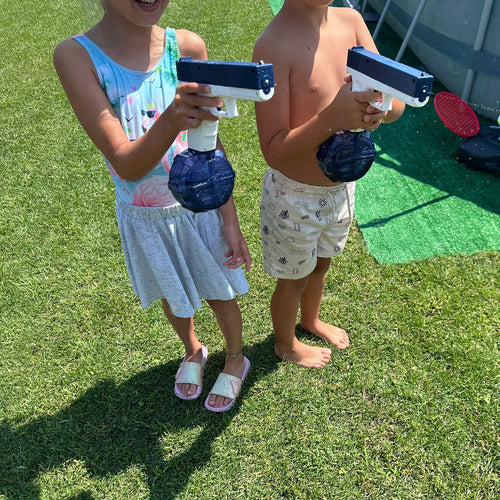 Automātiski elektriskā ūdens pistole - lieliski piemērota dažādiem gadījumiem. Spēlējoties dārzā, tā būs lieliska iespēja atvēsināties karstās dienās. Tā dažādos laiku, kas pavadīts pie ūdens, nodrošinot daudz prieka pludmalē vai baseinā. Tā labi noderēs arī visu veidu āra sanāksmēs, integrējot dalībniekus un sniedzot neaizmirstamus piedzīvojumus. Materiāls, funkcionalitāte - elektriskā automātiskā ūdens pistole, kas izgatavota no augstas kvalitātes ABS materiāla, apvieno izturību, lietošanas komfortu un modernas tehnoloģijas. Pistole darbojas elektriskā režīmā, kas nozīmē, ka jums nav manuāli jāspiež sūknis, nav nepieciešamas nekādas manuālas kustības, lai šautu. Vienkārši turiet nospiestu sprūdu, un pistole automātiski izšaus nākamos šāvienus, kas nodrošina nepārtrauktu un dinamisku jautrību bez pārtraukumiem. Pistole darbojas ar uzlādējamām baterijām. Komplektā ietilpst USB kabelis akumulatora uzlādēšanai, kas ļauj to viegli un ērti uzlādēt. Lietošanas vienkāršība un efektivitāte - lai sāktu jautrību, vienkārši atveriet vāciņu pistoles aizmugurē, pievienojiet kabeli akumulatora vadam, nostipriniet ar plastmasas vāciņu un aizveriet vāciņu. Kad pistole ir pilnībā uzlādēta, tā nodrošina ilgstošu jautrību apmēram 50 minūtes. Ieroča automātisko šāvienu izpilde notiek aptuveni 10 metru attālumā, kas padara to ideāli piemērotu dinamiskai spēlei plašās telpās. Divas aptveru versijas - mazākā aptvere ir kompakta un viegli pārnēsājama, ideāli piemērota īsākām spēlēm, nodrošinot pietiekami daudz ūdens daudziem šāvieniem. Lielajai bungu aptverei ir daudz lielāka ietilpība, kas ļauj ilgāk izklaidēties bez nepieciešamības bieži uzpildīt ūdeni. Tā ir ideāli piemērota garām ūdens kauju sesijām. Lai nomainītu aptveri, nospiediet zilo pogu, kas atrodas blakus sprūdam, kas atbrīvo aptveres fiksatoru. Ūdens tvertnes ir noslēgtas, kas nodrošina ērtu ūdens ieliešanu un noplūdi jautrības laikā. Specifikācija - krāsa: zila - balta; materiāls: ABS; šāviens: droša ūdens strūkla; uzlāde: caur USB; lielas aptveres ietilpība: 400 ml, mazas aptveres ietilpība: 40 ml; izmēri: 20,5 x 3 x 13,6 cm; svars: 0,3 kg; svars iepakojumā: 0,47 kg. Ieroča specifikācijas: krāsa: zila - balta Materiāls: ABS Šāviens: droša ūdens strūkla Uzlāde: caur USB Lielas aptveres ietilpība: 400 ml Mazas aptveres ietilpība: 40 ml Izmēri: 20,5 x 3 x 13,6 cm Svars: 0,3 kg Svars iepakojumā: 0,47 kg Komplektā iekļauts: ierocis Liela aptvere Maza aptvere 1 x AA baterija USB kabelis Ražotājs: Šantou pilsētas Čenghai rajons Kangston rotaļlietu fabrika 2. stāvs, nr. 1, 3 krustojums, Pumei Gangsha ceļš, Guangyi iela, Čenghai rajons, Šantou pilsēta, Guandunas province 1406894750@qq.com Brīdinājums Saturs: Nav piemērots bērniem līdz 3 gadu vecumam. Ieteicamais bērna vecums: 8+ - Produkts satur elementus, kas norijot var izraisīt aizrīšanos vai traumas. - Produkts nav piemērots lietošanai pārtikā. - Nepakļaujiet skarbajiem laikapstākļiem un ugunij. - Lietojiet paredzētajam mērķim. - Neignorējiet ieteikumus attiecībā uz lietotāja vecumu. - Nelietojiet bojātu produktu. - Montāžai nepieciešams pieaugušais. - Neglabājiet nesaliktas detaļas vietās, kur tām var piekļūt bērni. - Iepakojums nav rotaļlieta. Rotaļlietu jāizsaiņo pieaugušajam, un iepakojums un tā detaļas jānoņem bērnam nepieejamā vietā. Automātiskās ūdens pistoles ir rotaļlietas, kas sniedz izklaidi karstās dienās, taču ir svarīgi tās lietot droši. Droši, saprātīgi, piesardzīgi un atbildīgi, lai izvairītos no bīstamām situācijām vai traumām. 1. Lietojiet tikai ārā: ūdens pistoles ir paredzētas lietošanai ārā. Nelietojiet tās telpās vai slēgtās telpās. 2. Esiet uzmanīgi ar ūdens strūklas virzienu: nevirziet ūdens strūklu citu cilvēku sejā vai acīs. Atcerieties, ka ūdens strūklas jauda var būt pietiekami spēcīga, lai nodarītu kaitējumu. 3. Izvairieties no mērķēšanas uz cilvēkiem, kuri nav devuši savu piekrišanu, vai uz dzīvniekiem. Atcerieties, ka ūdens pistole ir rotaļlieta, un to nedrīkst izmantot agresīviem mērķiem. 4. Turiet prom no maziem bērniem: ja esat pieaugušais, centieties turēt ūdens pistoli maziem bērniem nepieejamā vietā, īpaši, ja viņi nav pietiekami atbildīgi, lai to lietotu bez uzraudzības. Lūdzu, ievērojiet ieteicamo bērna vecumu.