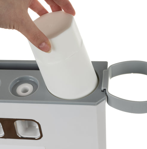 Dozators ir draudzīgs arī bērniem, tajā ir vietas līdz 5 zobu birstēm, kā arī