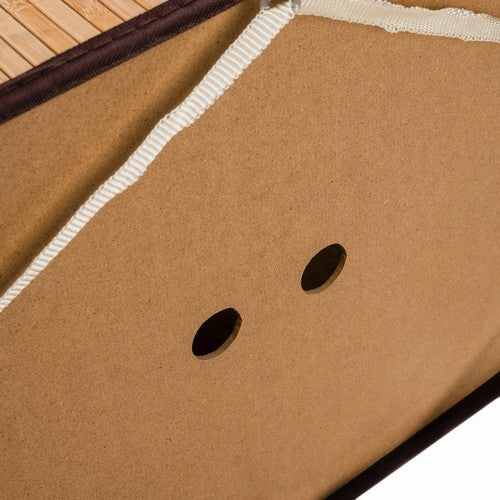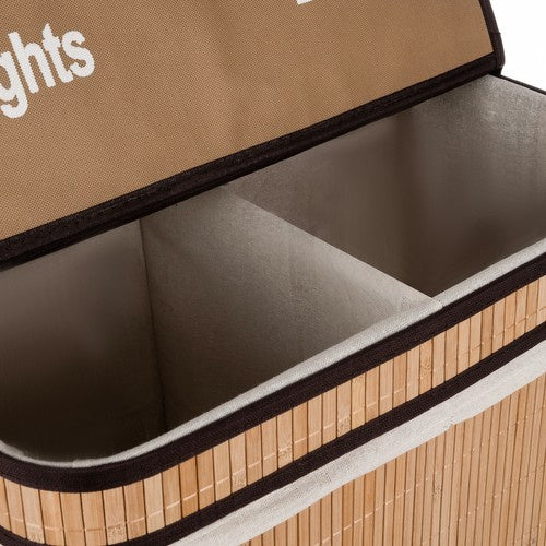 Divkameru 100l bambusa veļas grozs – elegants konteiners veļas šķirošanai! ?? izturīgs materiāls – bambuss ir ārkārtīgi izturīgs materiāls, pateicoties tā dabiskajai izturībai pret mehāniskiem bojājumiem un mitrumu, grozs ilgstoši saglabā savu izskatu un funkcionalitāti; milzīga ietilpība – veļas grozs ar 100 litru ietilpību ir ideāls risinājums ģimenēm vai cilvēkiem, kuri mazgā lielāku veļas daudzumu; ļauj uzglabāt drēbes starp mazgāšanas reizēm, nepaceļot atloku; stabila konstrukcija – nodrošina drošību ikdienas lietošanas laikā; grozs neapgāžas pat tad, ja tas ir pilnībā piepildīts; ieliktņa atbalsta gredzens – notur ieliktni stabilā stāvoklī un novērš auduma sabrukšanu; pateicoties šai stīpai, ieliktnis paliek savā vietā, kas atvieglo veļas ievietošanu un izņemšanu; divkameru – konteiners ļauj ērti atdalīt veļu, piemēram, gaišos un tumšos apģērbos vai smalkos un standarta apģērbos, un jūs ietaupāt laiku, ievietojot veļu. Tīrības uzturēšana – grozam ir noņemams auduma ieliktnis, ko var regulāri mazgāt, un aizsargāto bambusa materiālu var tīrīt ar mitru drānu, kas ļauj saglabāt estētisku izskatu un higiēnu pat ikdienas lietošanā; viegla salikšana – veļas groza salocīšana ir vienkārša un intuitīva, vienkārši izstiepiet grozu aiz austiņām, ievietojiet apakšu, uzbīdiet ieliktni un piespiediet malu ar atloku; izturīga meistarība – augstas kvalitātes materiāli un precīzi izstrādātas detaļas padara grozu stingru, neizliekoties pat pilnībā piepildītu līdz atlokam; estētiskais izskats – veļas grozam raksturīgs estētisks izskats, bez izvirzītām vītnēm vai apdares nepilnībām, tas izskatās glīts un stilīgs, lieliski iederoties vannas istabas vai veļas telpas interjerā; groza specifikācijas: austiņas pārvadāšanai; caurumi apakšā; noņemams ieliktnis; izmērs: 60 x 54 x 35 cm; ietilpība: 100 l; svars: 2,25 kg; svars iepakojumā: 2,7 kg; materiāls: bambuss, poliesters, MDF, kokvilna, PP, dzelzs, neilons; komplektā iekļauts: atkritumu tvertnes materiāls; brūna transportēšanas kartona kaste.