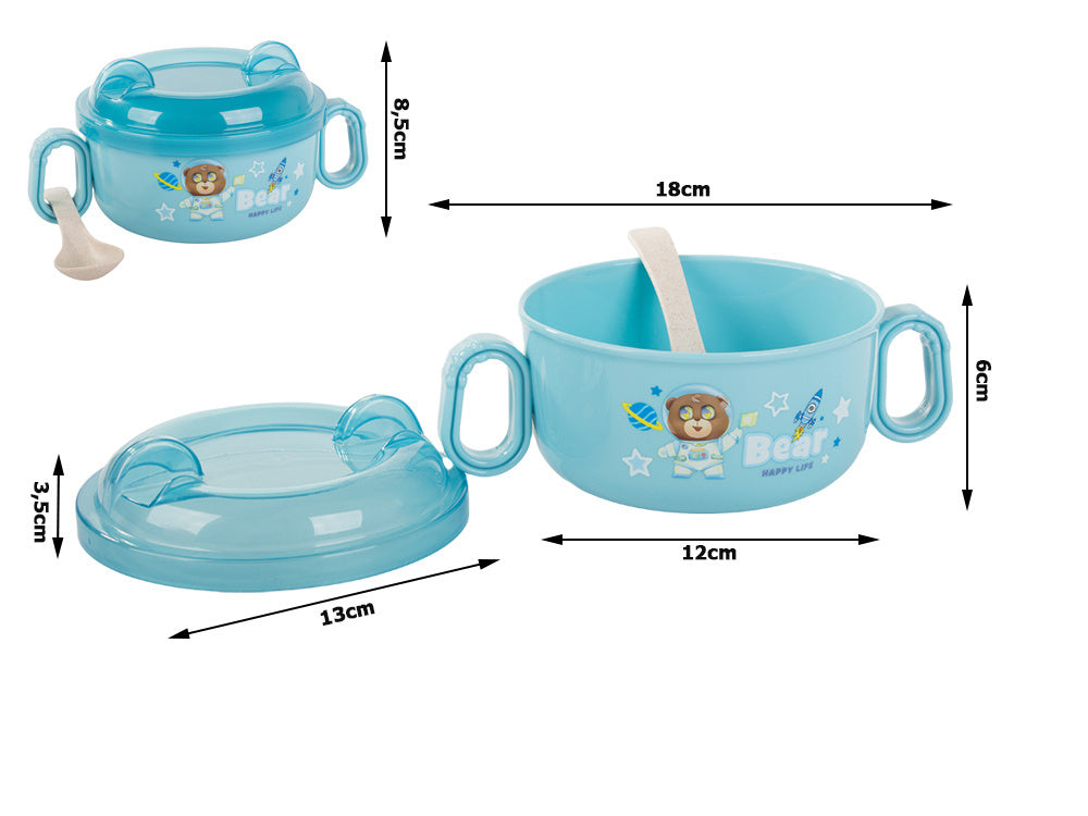 Barošanas piederumu komplekts bērnu pārtikas bļoda ar rokturiem un karoti