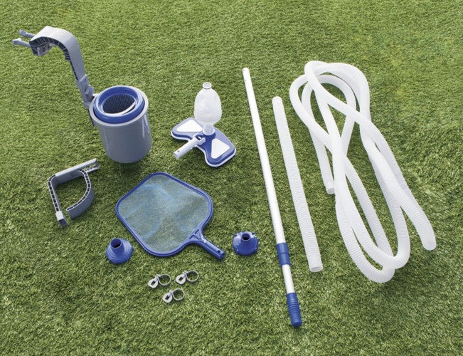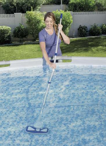 Bestway peldbaseina tīrīšanas komplekts 58237? Pilns komplekts - virsmas tīrītājs, baseina tīrītājs, tīkls un regulējams kāts. Vienkārša lietošana - visu piederumu vienkārša struktūra nodrošina ātru montāžu un iespēju pieslēgties filtrācijas sistēmām. Izturīgs materiāls - visi komplekta elementi ir izgatavoti no pilnībā pretkorozijas plastmasas. Daudzfunkcionāls - trīs piederumi ļauj pastāvīgi noņemt redzamus piemaisījumus. Specifikācija - iepakojuma izmēri (garums, platums, augstums) 1122 x 27 cm; svars 5500 kg. Specifikācija: Bestway produkta kods: 58237. Skimmera izmēri: 500 x 26 cm. Maksimālais teleskopiskā kāta garums: 279 cm. Padeves šļūtene: 7,5 m. Iepakojuma izmēri (garums, platums, augstums) 1122 x 27 cm. Svars 5500 kg.