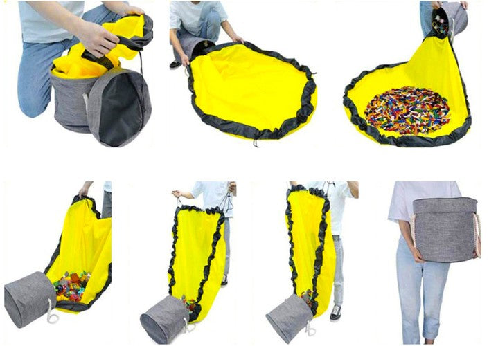 Šis ir 2-in-1 rotaļlietu grozs ar rotaļu paklājiņu. Tas ir lielisks risinājums