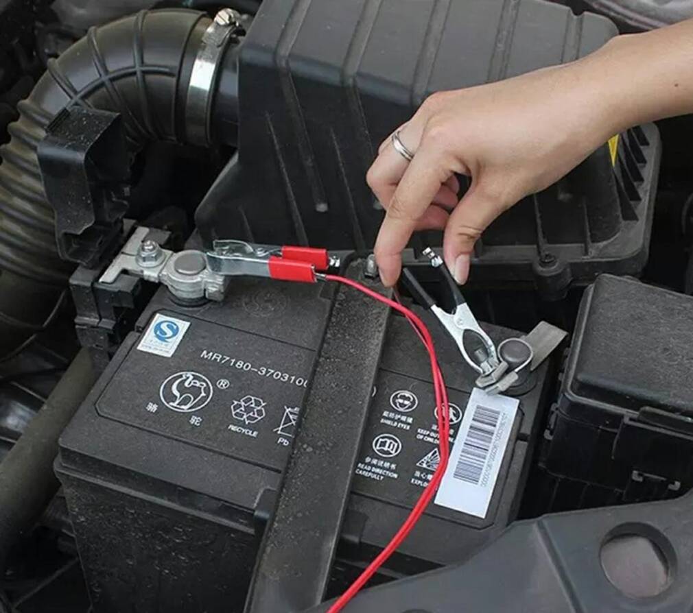 tieši ar akumulatora poliem, izmantojot krokodila klipus. Tas nodrošina iespēju