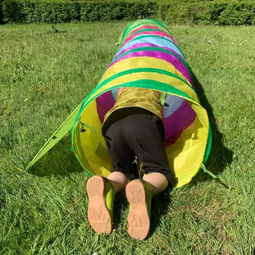 Bērnu rotaļu tunelis "kāpurķēde" ir viegli salokāms un atlokāms - atlokīšana vēl nekad nav bijusi tik vienkārša, vienkārši izņemiet to no kofera, atkabiniet aizdares, un tunelis pats atlokīsies. Salocīšana ir vēl vienkāršāka, vienkārši pavelciet no viena gala uz otru un ievietojiet to koferī. Forma un izskats - bērnus bieži piesaista neparastas un smieklīgas lietas. Kāpurķēžu telts noteikti rosinās viņu zinātkāri un mudinās spēlēties. To unikālais izskats var arī stimulēt bērnu radošumu, mudinot viņus izdomāt dažādus rotaļu scenārijus. Stimulē iztēli - spilgtas un košas krāsas, kas piesaista bērnu uzmanību, stimulē atklāšanu un iztēli. Bērni tunelī var medīt, rāpot un spēlēt paslēpes, stimulējot viņu smadzeņu attīstību un sniedzot nebeidzamu jautrību! Koferis - salocītais tunelis aizņem ļoti maz vietas, un turklāt tā pārsegs ir aprīkots ar stiprināšanas siksnām un ērtu pārnēsāšanas rokturi, lai to būtu viegli uzglabāt un transportēt. Specifikācija - materiāls: pārsegs: poliesters + epe putas, rāmis: tērauds, pārsegs: poliesters + pp; krāsa: daudzkrāsains; kofera izmēri: 51 cm; tuneļa izmēri: 46 x 165 cm; Kopējie izmēri: 66 x 75 x 165 cm; svars: 740 g; svars iepakojumā: 750 g. Specifikācija Materiāls: Pārvalks: Poliesters + EPE putas, Rāmis: Tērauds, Pārvalks: Poliesters + PP Krāsa: Daudzkrāsains Korpusa izmēri: 51 cm Tuneļa izmēri: 46 x 165 cm Kopējie izmēri: 66 x 75 x 165 cm Svars: 740 g Svars iepakojumā: 750 g Iekļauts tunelis ar durvīm x 2 Korpuss Kāpurķēžu tunelis ir telts veids, kas ieguvis popularitāti, pateicoties tā unikālajam dizainam, kas atgādina kāpurķēžu ķermeni. Tā ir telts ar iegarenu formu, ar divām skaidri marķētām ieplūdes un izplūdes atverēm. Brīdinājuma saturs: - Tikai lietošanai mājas apstākļos. Lietot pieaugušo tiešā uzraudzībā. - Sargāt no uguns. - Brīdinājums. Nav piemērots bērniem līdz 36 mēnešu vecumam. Sīkas detaļas. Aizrīšanās risks. - Nekad neatstājiet bērnu bez uzraudzības! - Nelietojiet produktu, ja visas sastāvdaļas nav pareizi uzstādītas un noregulētas. Nekavējoties - Pārtrauciet lietošanu, ja kāda produkta daļa ir bojāta, saplēsta vai trūkst kādas daļas. - neļaujiet telti vienlaikus izmantot vairāk nekā 2 bērniem. - produkts ir paredzēts lietošanai telpās uz līdzenas, stabilas virsmas. - telts elementi nav izturīgi pret mitrumu. - produktu drīkst uzstādīt tikai pieaugušais. Neļaujiet bērniem palīdzēt telts uzstādīšanā. - produktu nevar izmantot kā vienīgo aizsardzību pret saules gaismu. - produkts ir paredzēts tikai kā rotaļlieta. to nevar izmantot kā kempinga telti. - lietojiet paredzētajam mērķim. - neignorējiet ieteikumus attiecībā uz lietotāja vecumu. - nelietojiet bojātu produktu. neglabājiet nesaliktas detaļas vietās, kur tām var piekļūt bērni. - iepakojums nav rotaļlieta. rotaļlieta jāizsaiņo pieaugušajam, un iepakojums un tā daļas jānoņem no bērna rokām. - neglabājiet nesaliktas detaļas vietās, kur tām var piekļūt bērni.