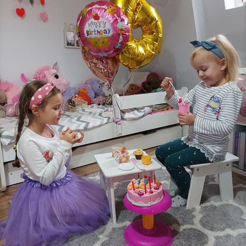 šķīvji, karotes, tējkanna ar vāku, kūka, svece, cepumi un citi kūku piederumi. Iedomājieties visas radošās rotaļas, kas varētu notikt tieši jūsu bērna istabā! Tējas komplekts atdzīvina dažādus scenārijus, piemēram, rotaļu māju, kafejnīcu, restorānu un pat pikniku!