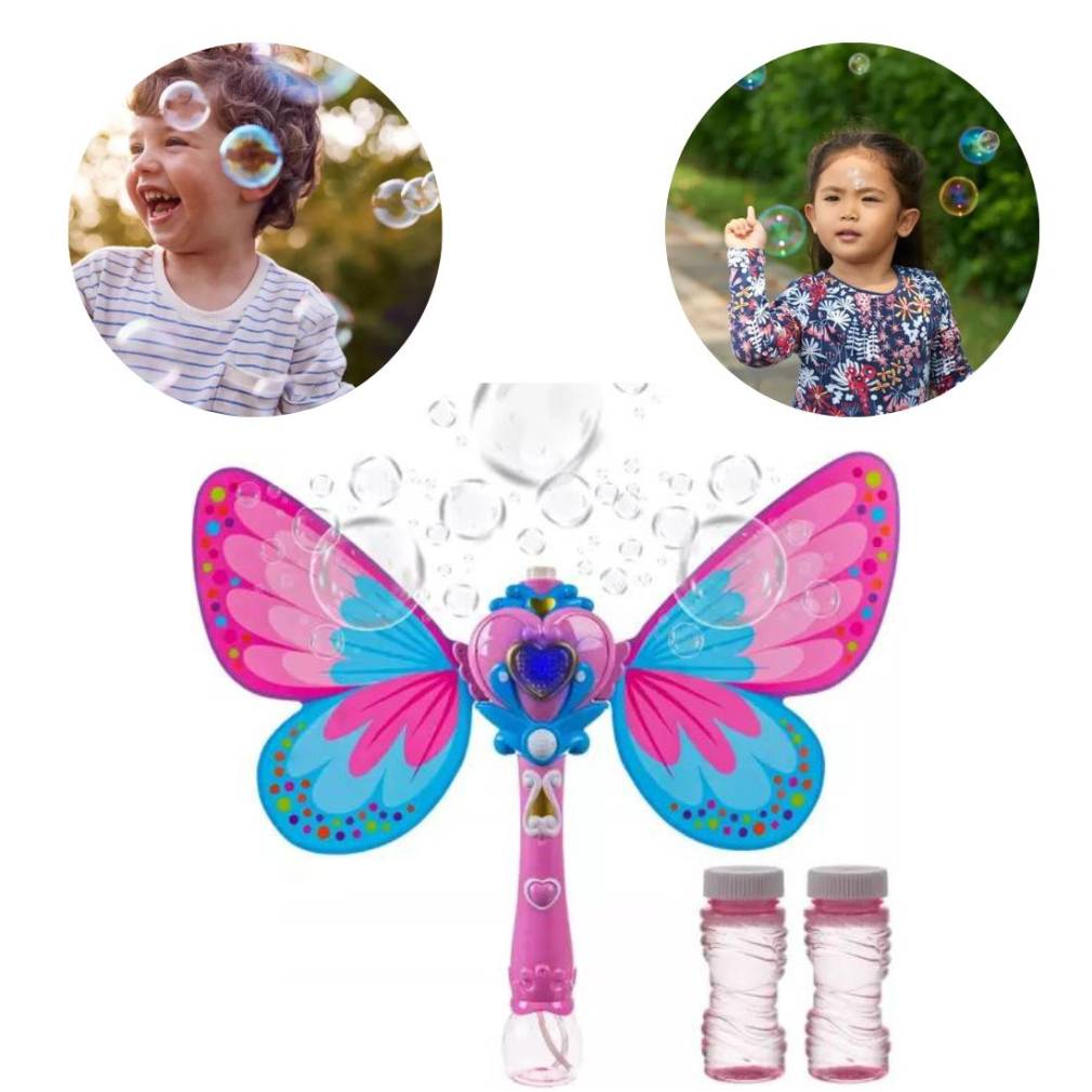 Šī burbuļu mašīna - tauriņš ir pārsteidzoša! Tā var izpūst simtiem burbuļu dažu sekunžu laikā. Atliek tikai pievienot komplektā iekļauto burbuļu šķidruma trauku un to ieslēgt. Kad šķidrums beidzas, neuztraucieties! Vienkārši piepildiet trauku ar ūdeni un nedaudz trauku mazgāšanas līdzekļa.
