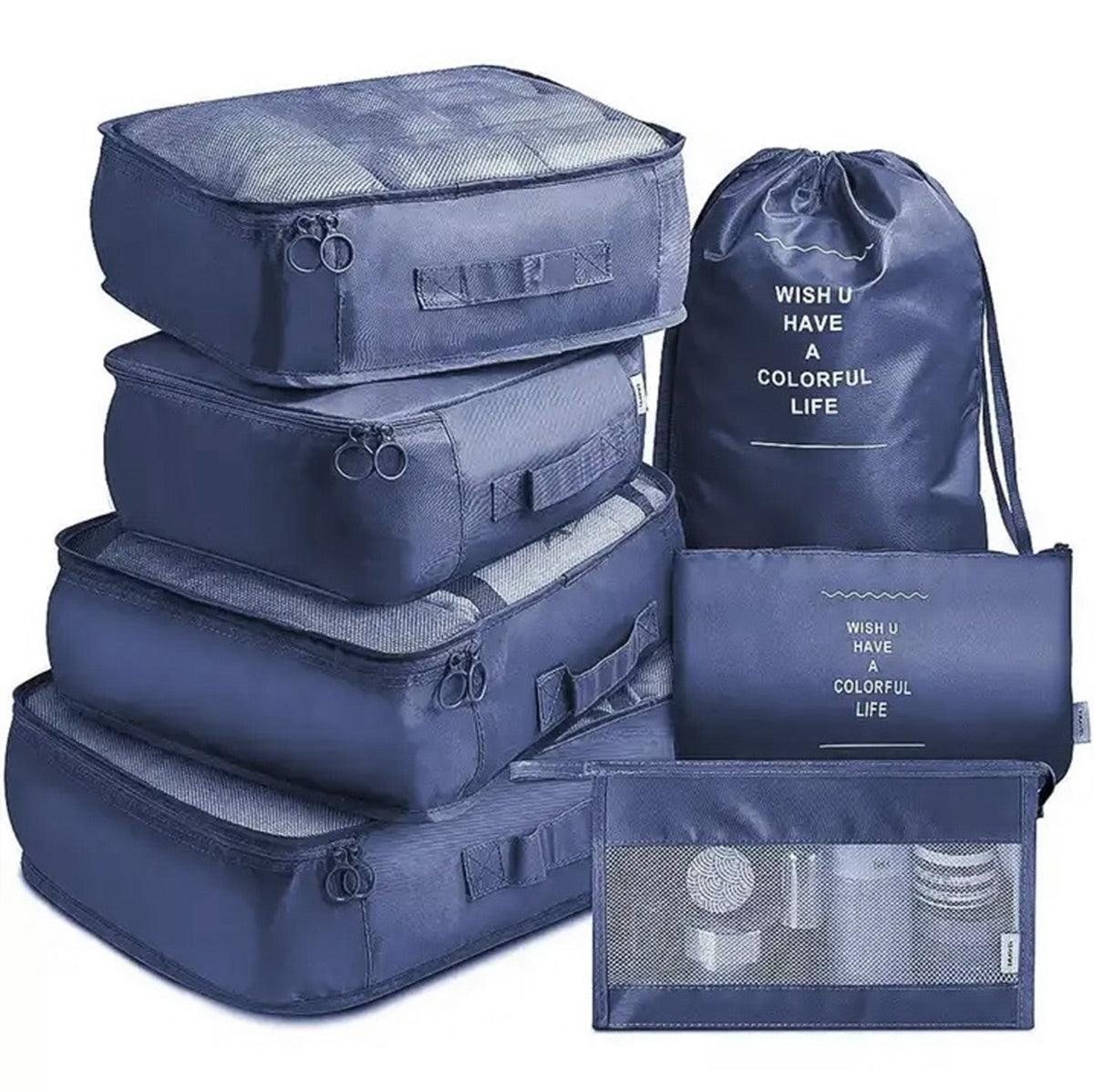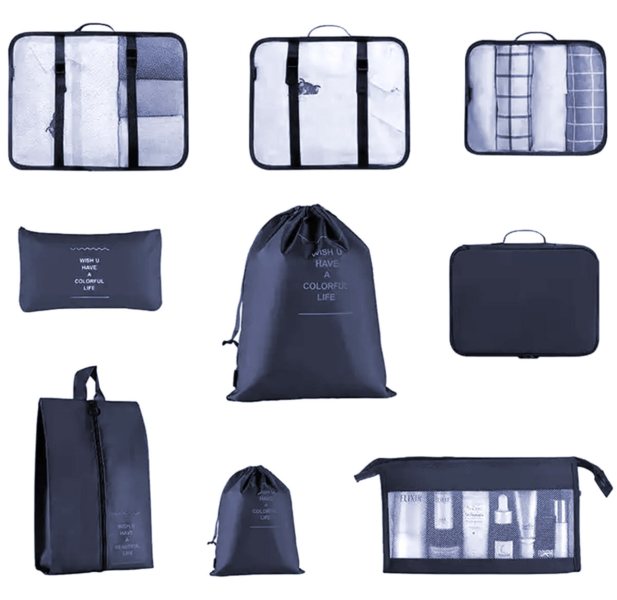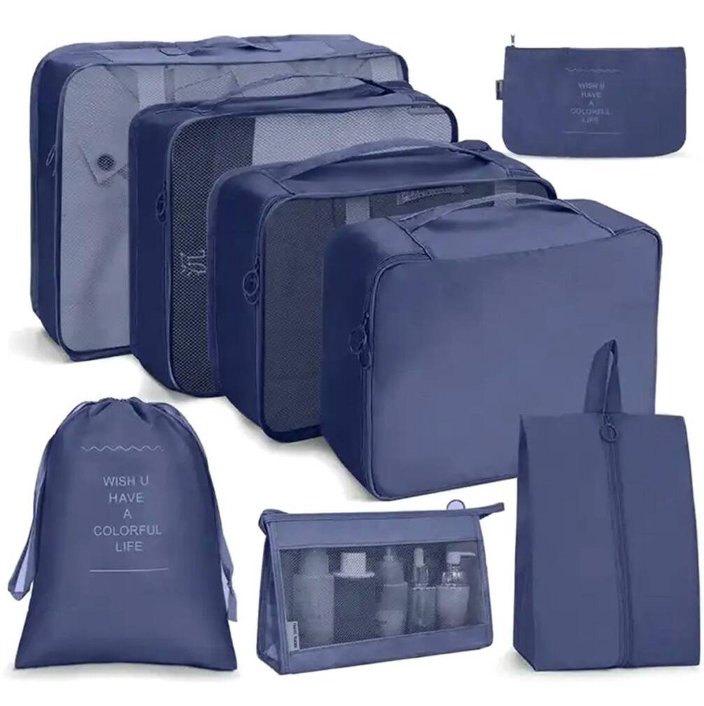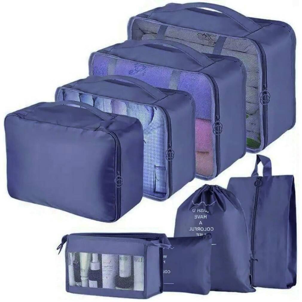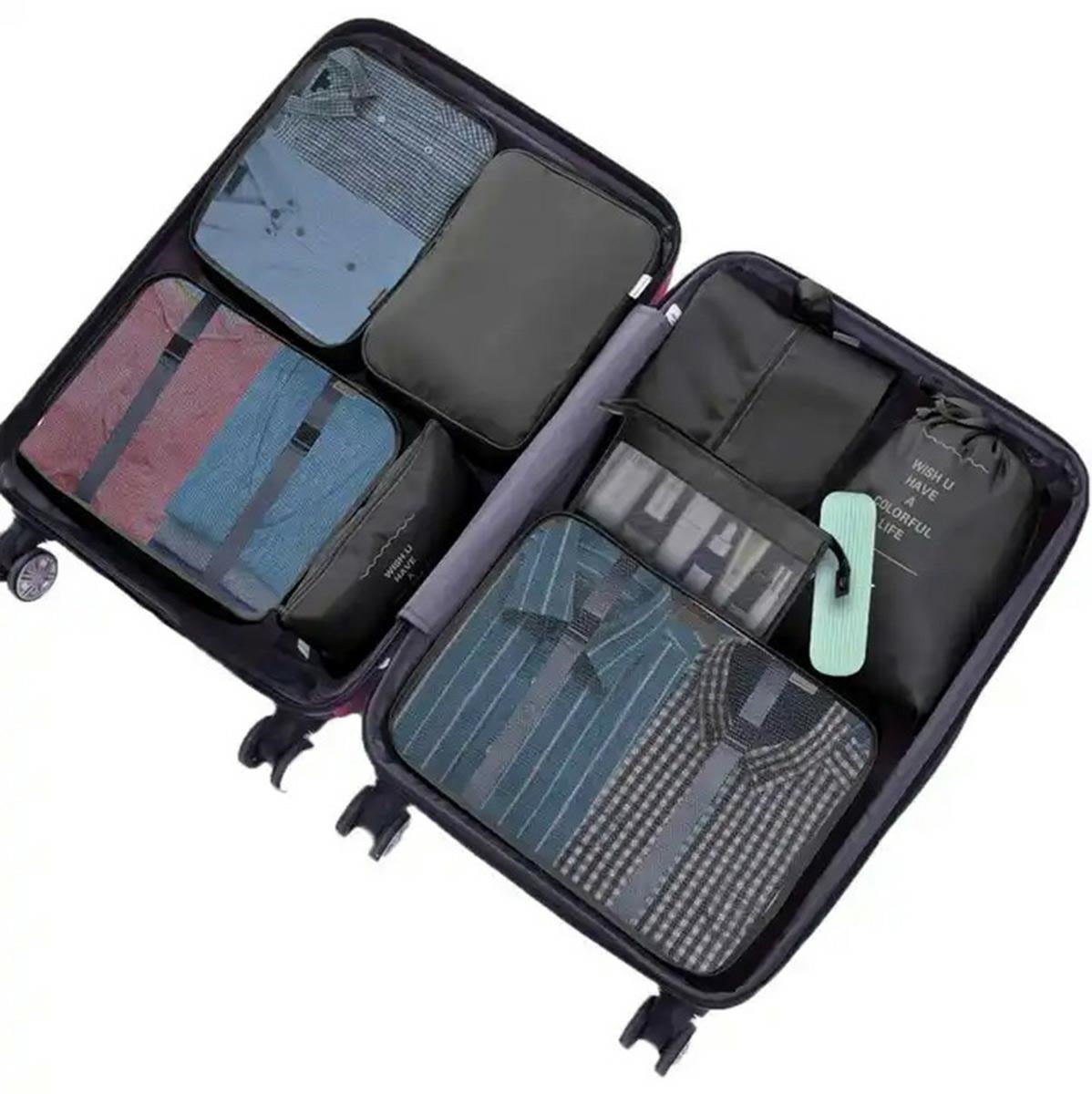 rāvējslēdzējiem, 1 apavu soma, 1 kosmētikas soma un 1 soma ar aukliņu.