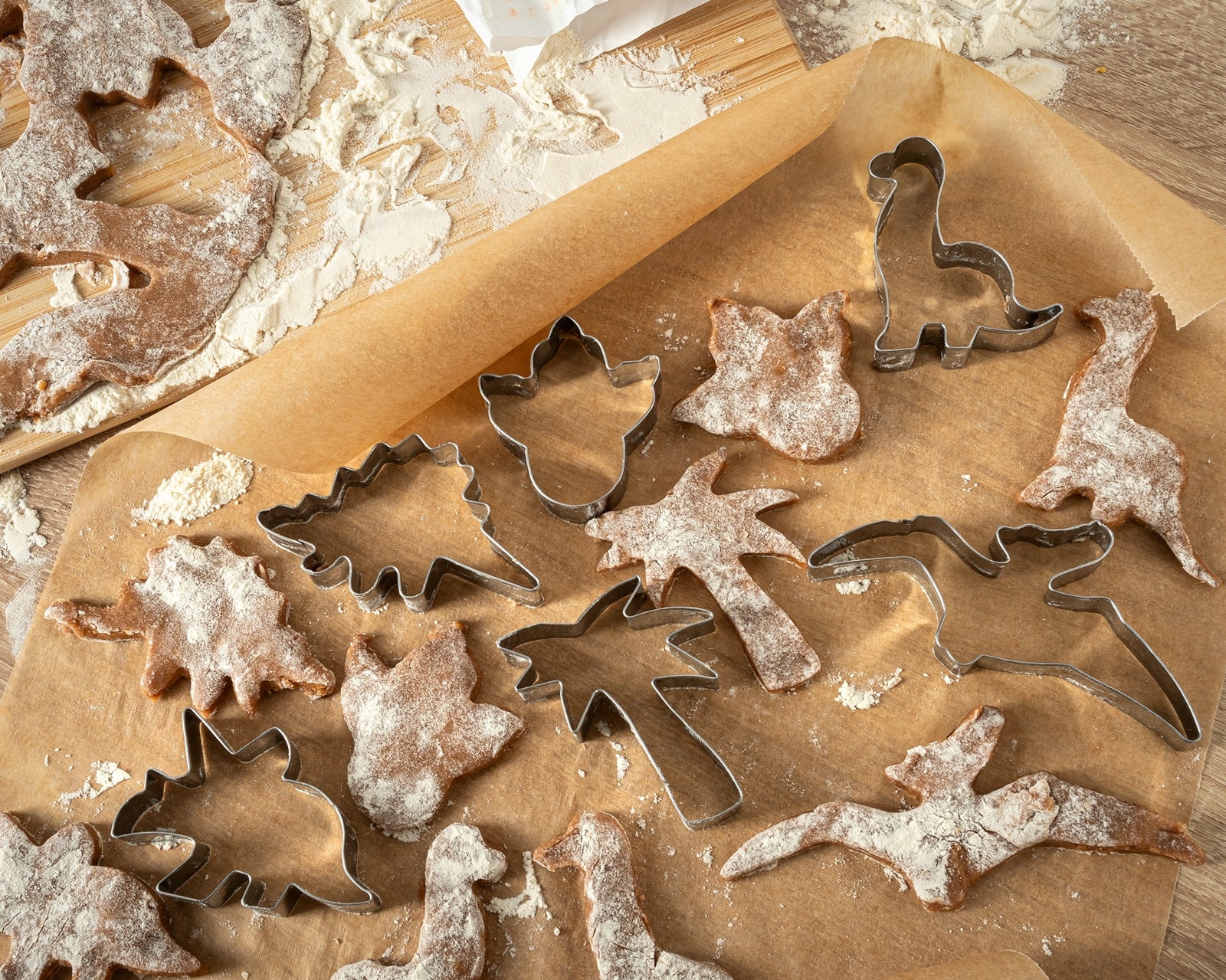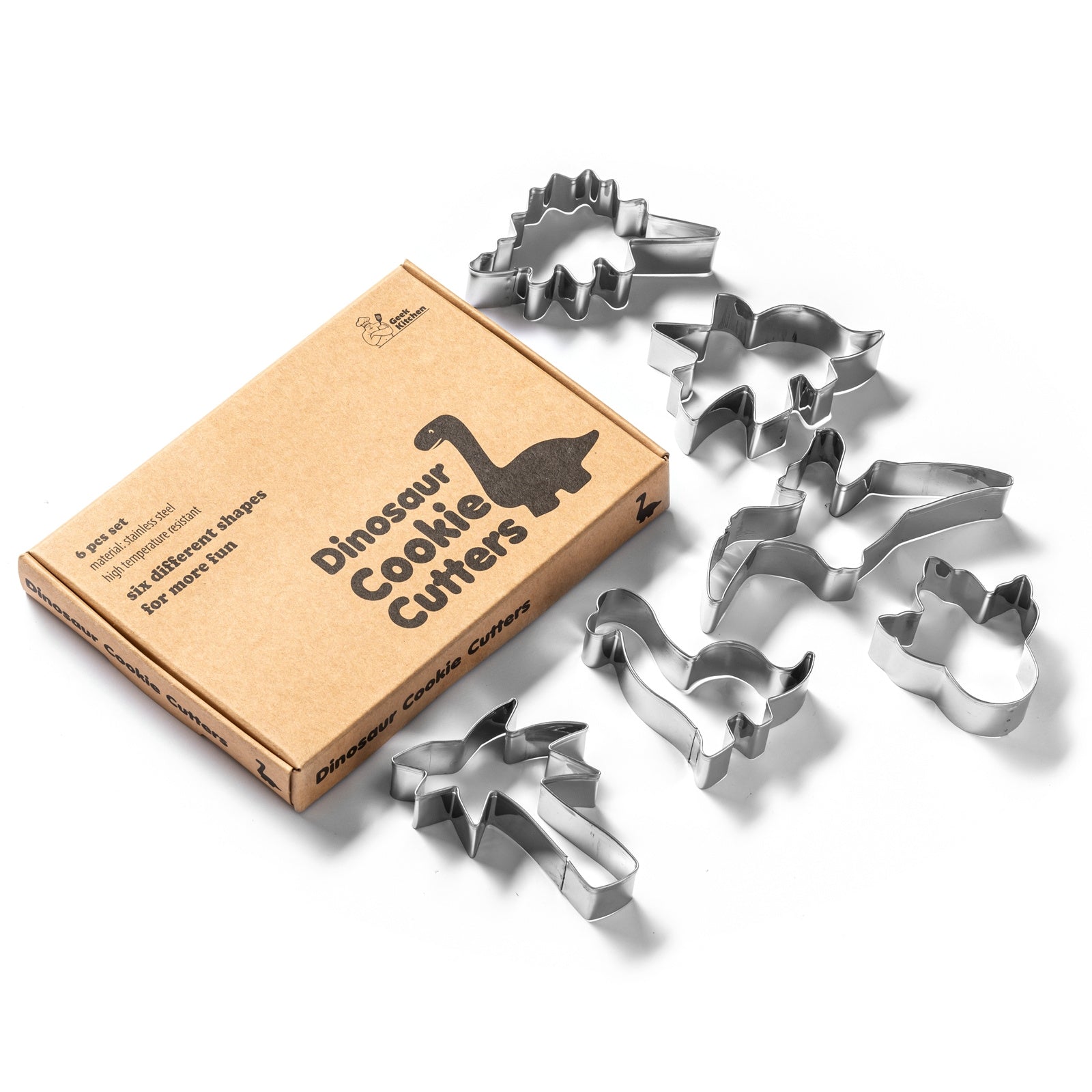 dinozauru cepumu formiņu komplekts – atgriezieties aizvēsturiskā salduma laikmetā! Uzaiciniet savā virtuvē gan mazus, gan lielus dinozaurus! Mūsu unikālais 6 metāla cepumu formiņu komplekts, kas veidots pēc jūsu iecienītākajām aizvēsturiskajām radībām, pārvērtīs cepumu cepšanu ne tikai par gardu nodarbi, bet arī par neaizmirstamu piedzīvojumu. Neatkarīgi no tā, vai tas ir majestātisks brontozaurs, burvīgs triceratops vai dinozauru pēdu nospiedumu izsekošana – izvēle ir jūsu ziņā! Kopā radiet cepumu šedevrus un izrotājiet tos ar savu iztēli. Ļaujiet saviem ceptajiem darinājumiem kļūt par jebkura notikuma zvaigzni – vai tā būtu dzimšanas dienas ballīte, ģimenes salidojums vai vienkārši jauka diena ar mīļajiem. Kopā pavadītais laiks virtuvē ir nenovērtējams, un prieks par dinozauru formas cepumiem ir garantēts! Īpašības: 6 dažādas dinozauru formas: pēdas nospiedums, dinozauri un pat aizvēsturisks koks – katram ir kaut kas piemērots! Izgatavots no augstas kvalitātes metāla: izturīgs, drošs un lieliski piemērots atkārtotai lietošanai. Noapaļotas malas: ērti un droši lietojams pat bērniem. Viegli tīrāms: pietiek ar nedaudz ūdens un mazgāšanas līdzekļa. Videi draudzīgs iepakojums: ideāli piemērots tiem, kam rūp vide. Ir pienācis laiks cepšanas priekiem un ceļojumam atpakaļ uz Juras laikmetu – ar saldu pavērsienu!